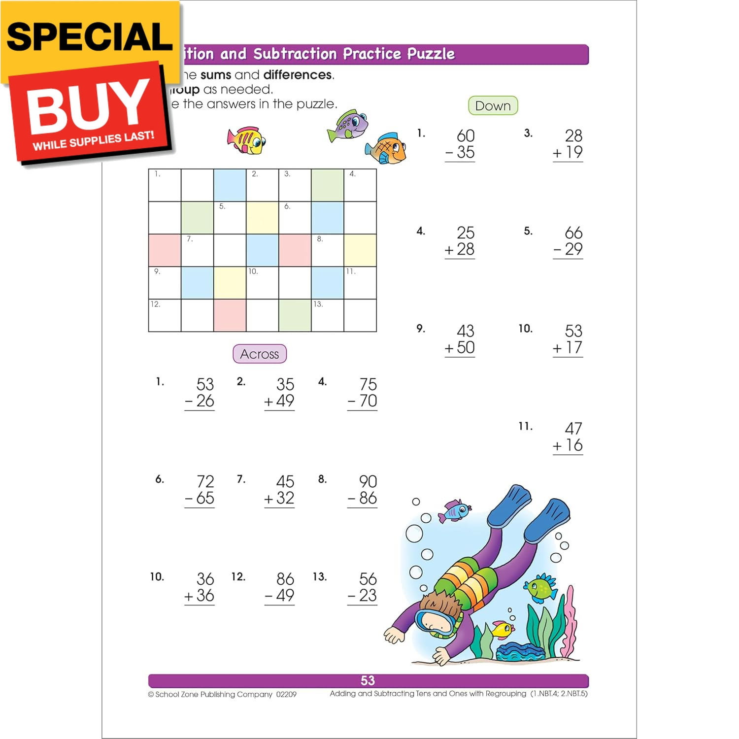 • School Zone Addition Subtraction Workbook: 64 Pages, 1st Grade, 2nd Grade, Ele