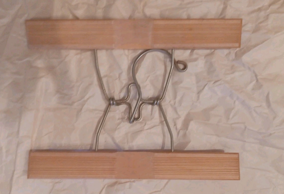 как выглядит Vtg Wooden Pants Clamp Hangers - Setwell 10 1/2" , Elyte 10" , Unmarked 9" фото