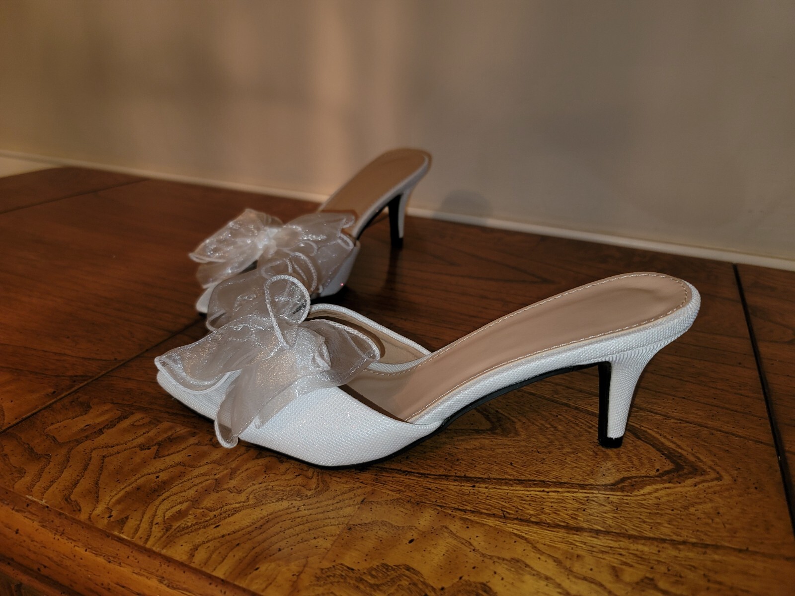 как выглядит NEW white 2.5" Open Toe glimmer bridal low heels wedding shoes size 8.5 фото