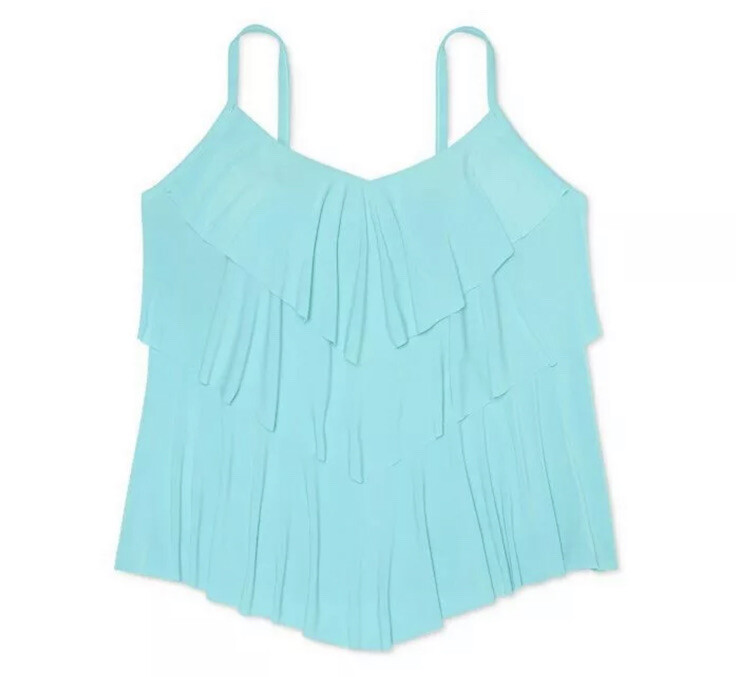 как выглядит Womens Aqua Green Plus Size Tiered Tankini Top - Light Blue, Sz 16W фото