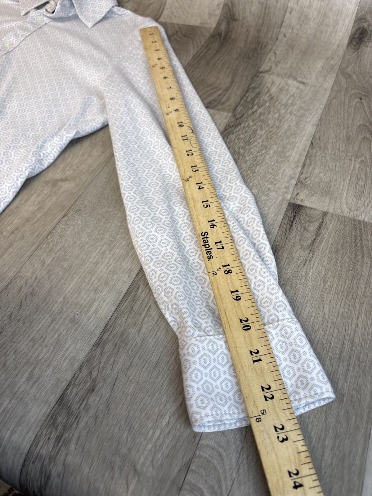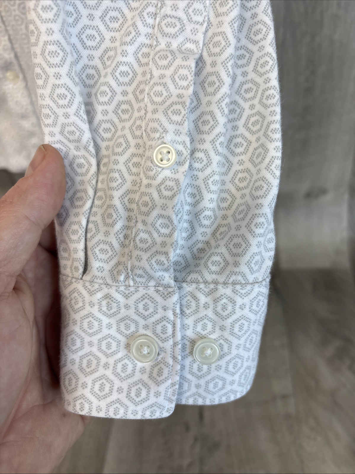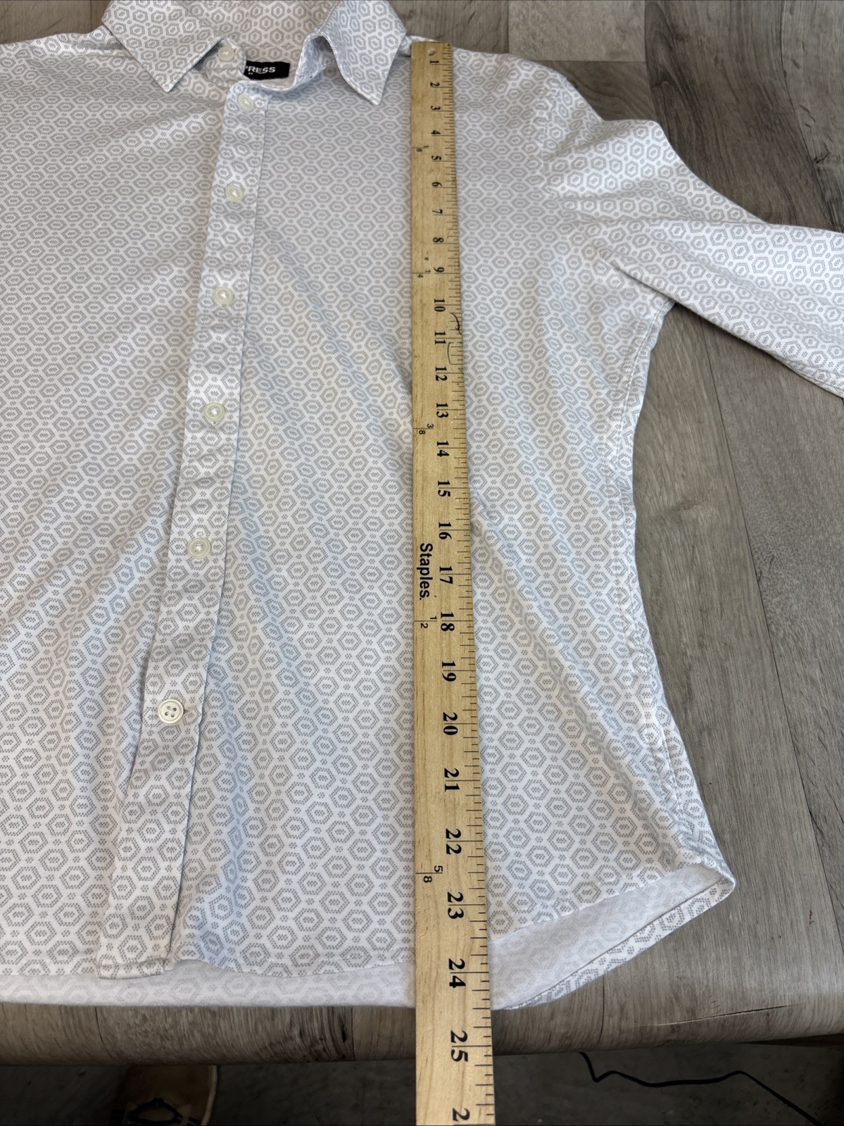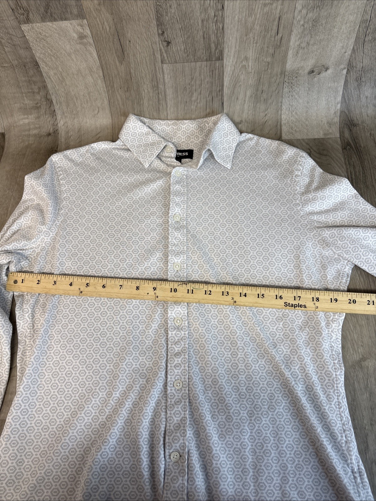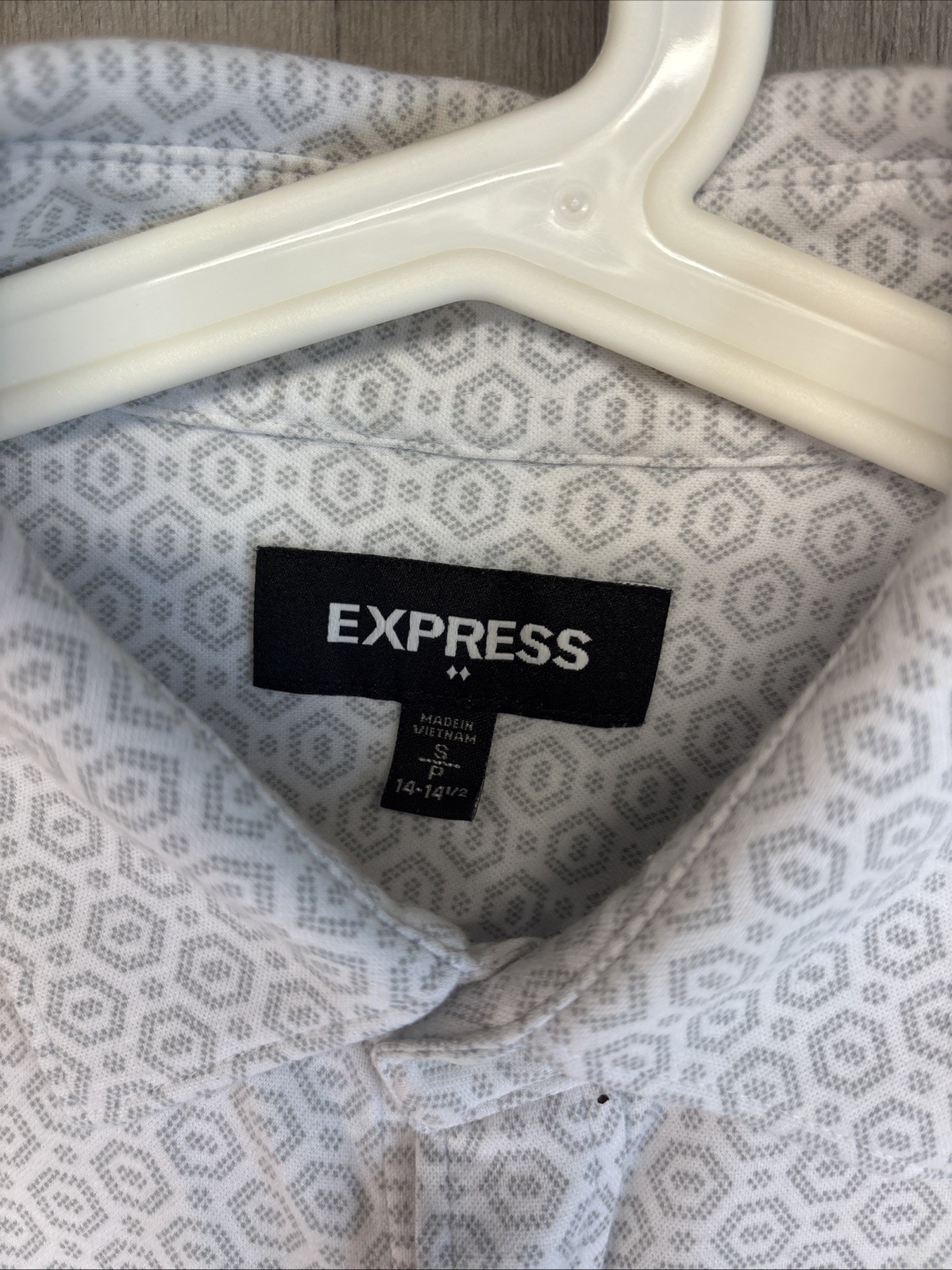 Express Slim Fit Button Down Dress Shirt Men's Size SMALL 14-14.5 - White /Gray