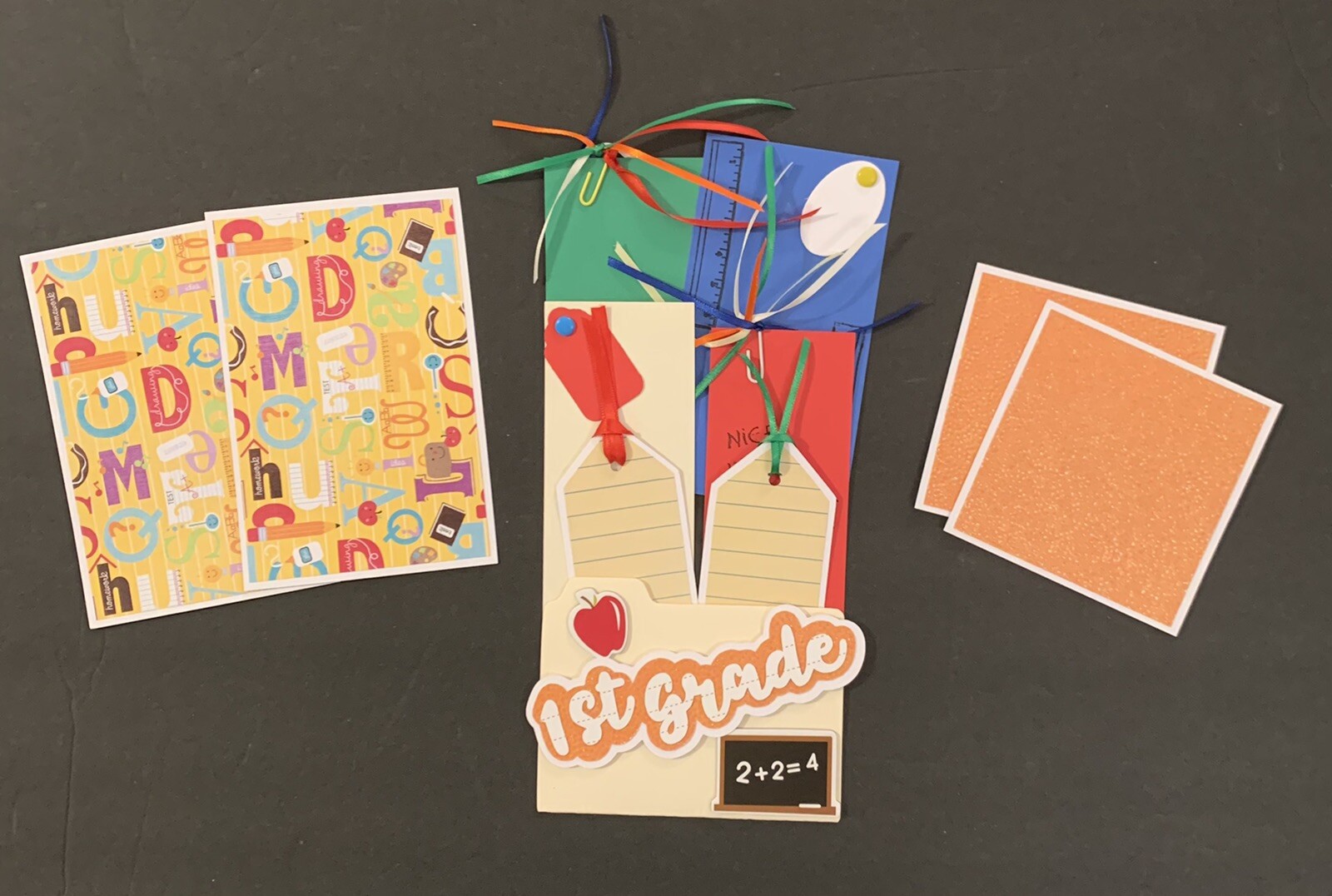 как выглядит 2633 1ST GRADE SCHOOL PREMADE SCRAPBOOK MAT TAG SET EPHEMERA - TONYA фото