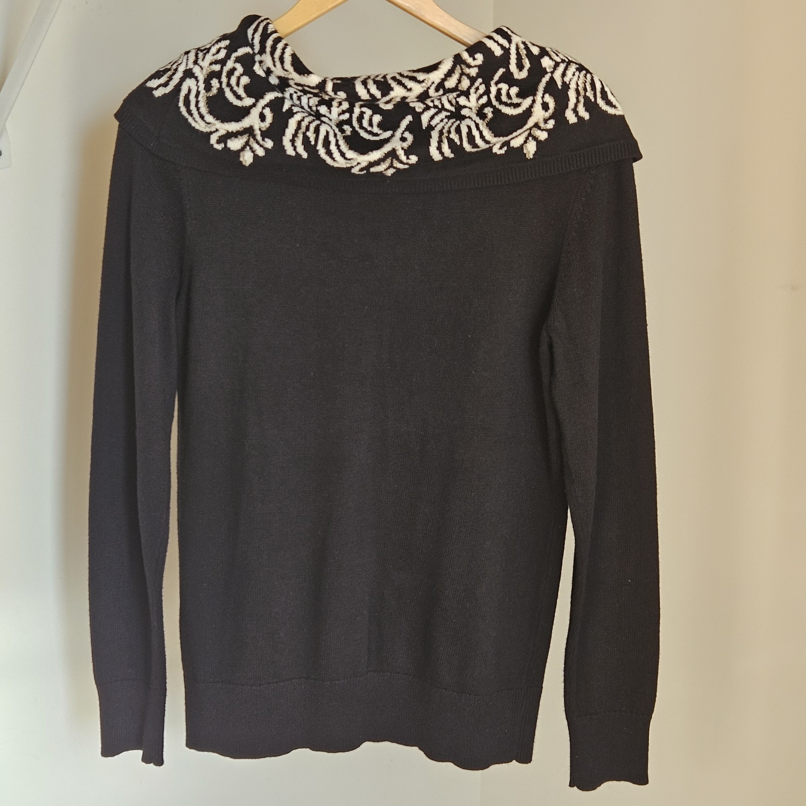 как выглядит Charter Club Womens Medium Cowl Neck Cotton Blend Sweater Black White Gold фото
