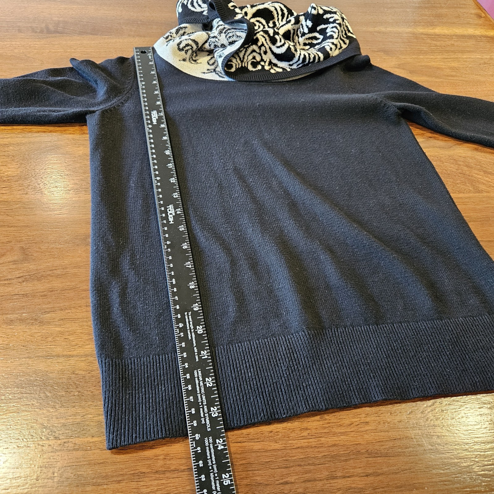 Charter Club Womens Medium Cowl Neck Cotton Blend Sweater Black White Gold