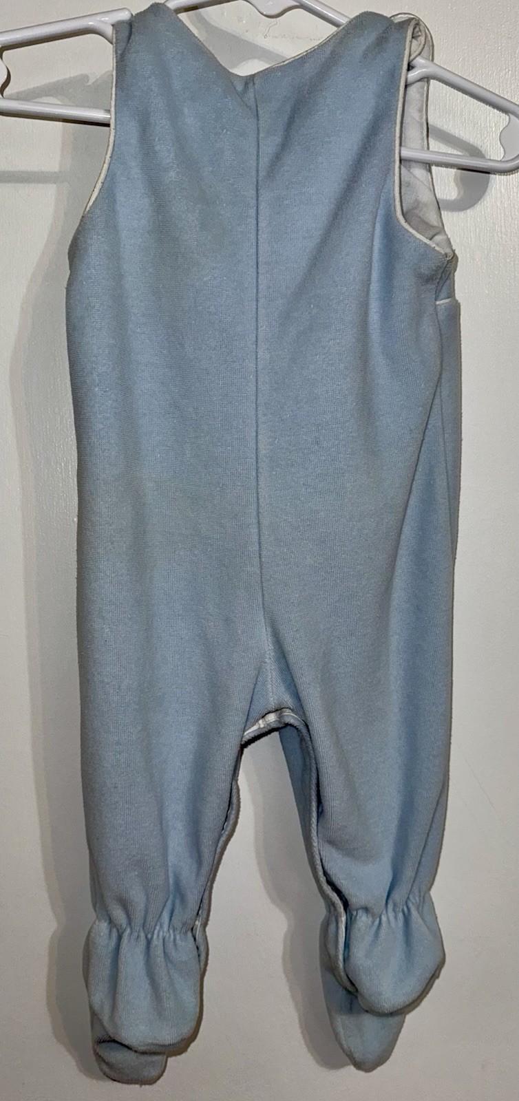 Vintage Baby Dior Blue Footed Jumpsuit Embroidered Cloud 6 months