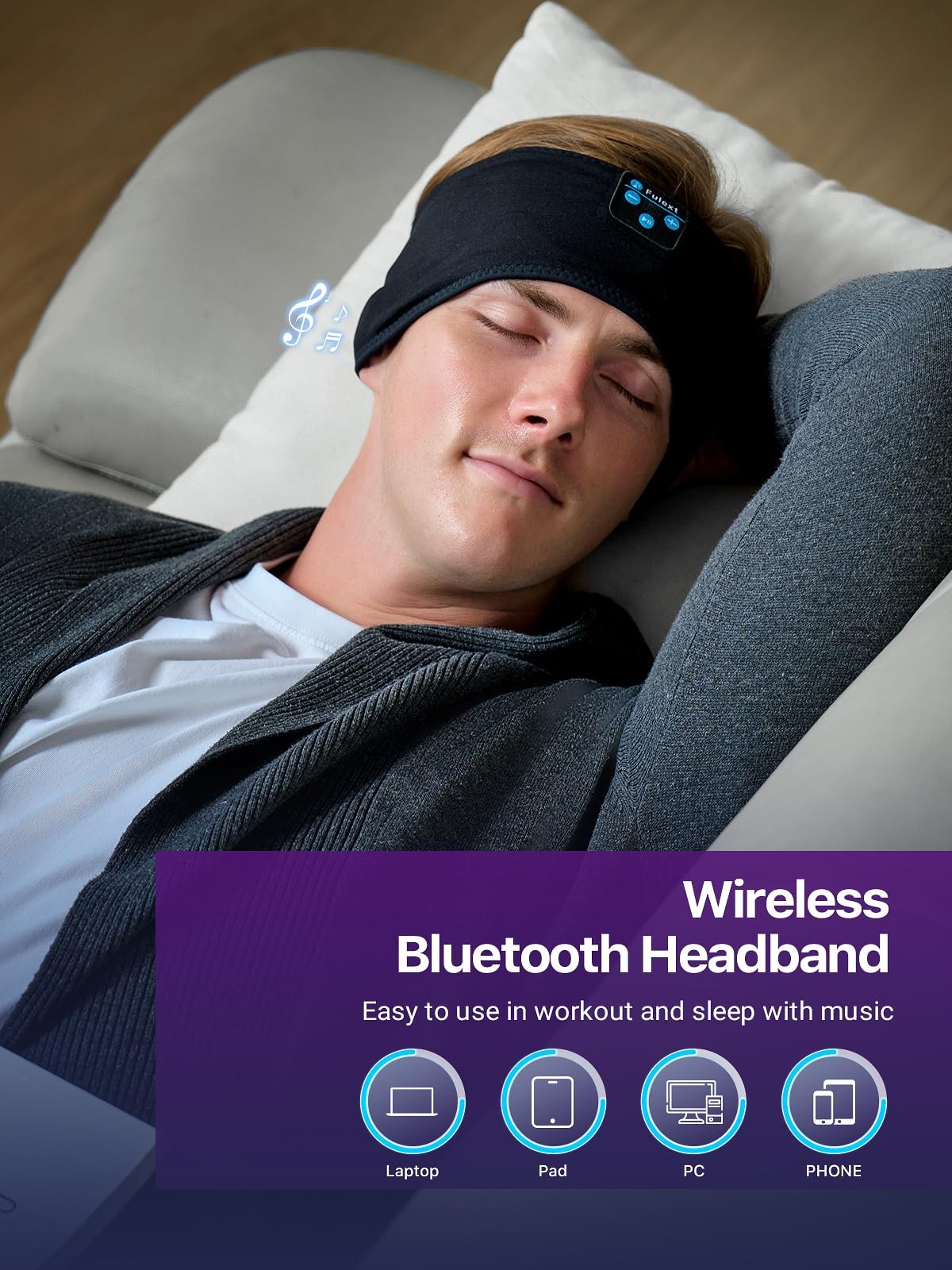 Bluetooth Sleep Headphones Headband with Ultra Thin Speakers for Side Sleepers