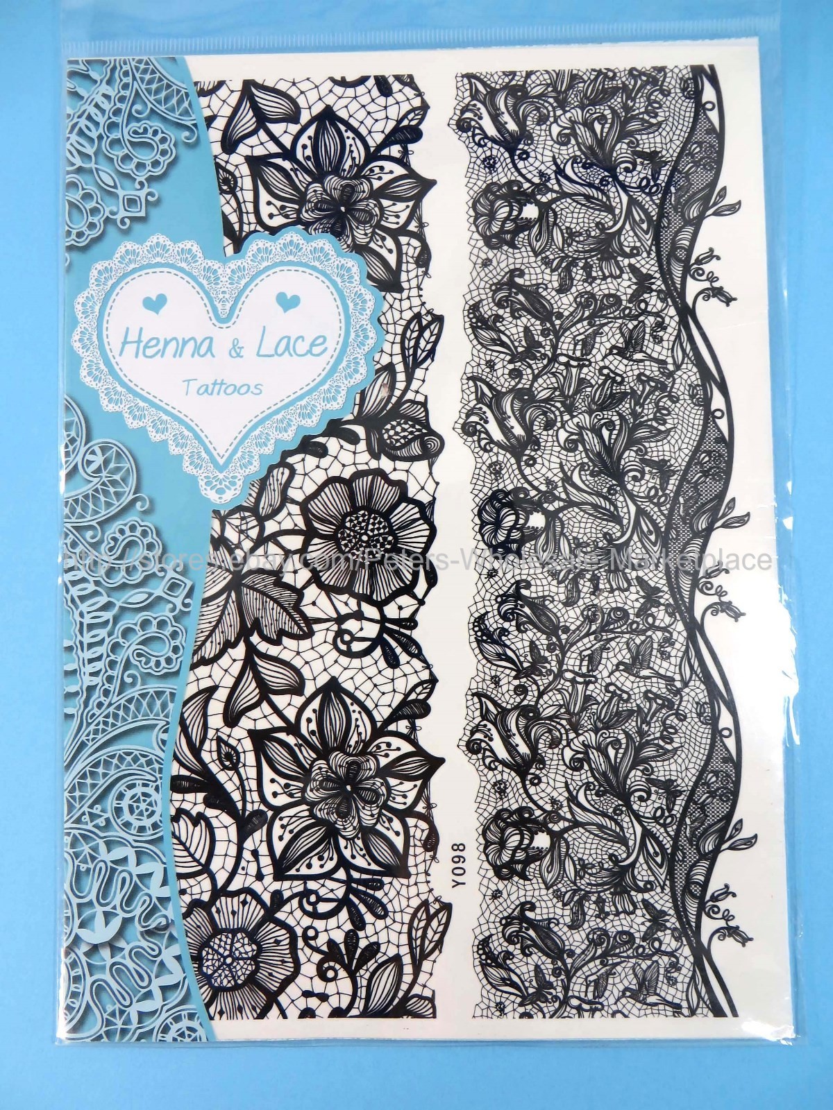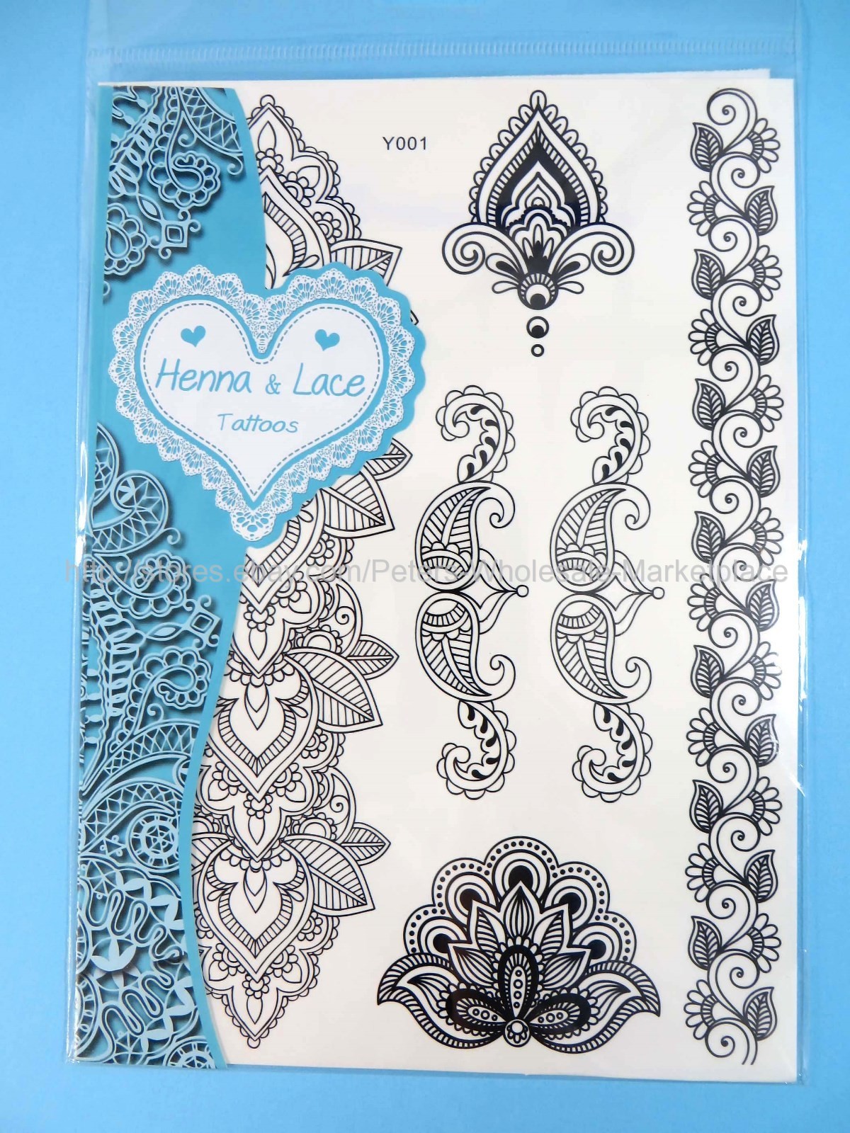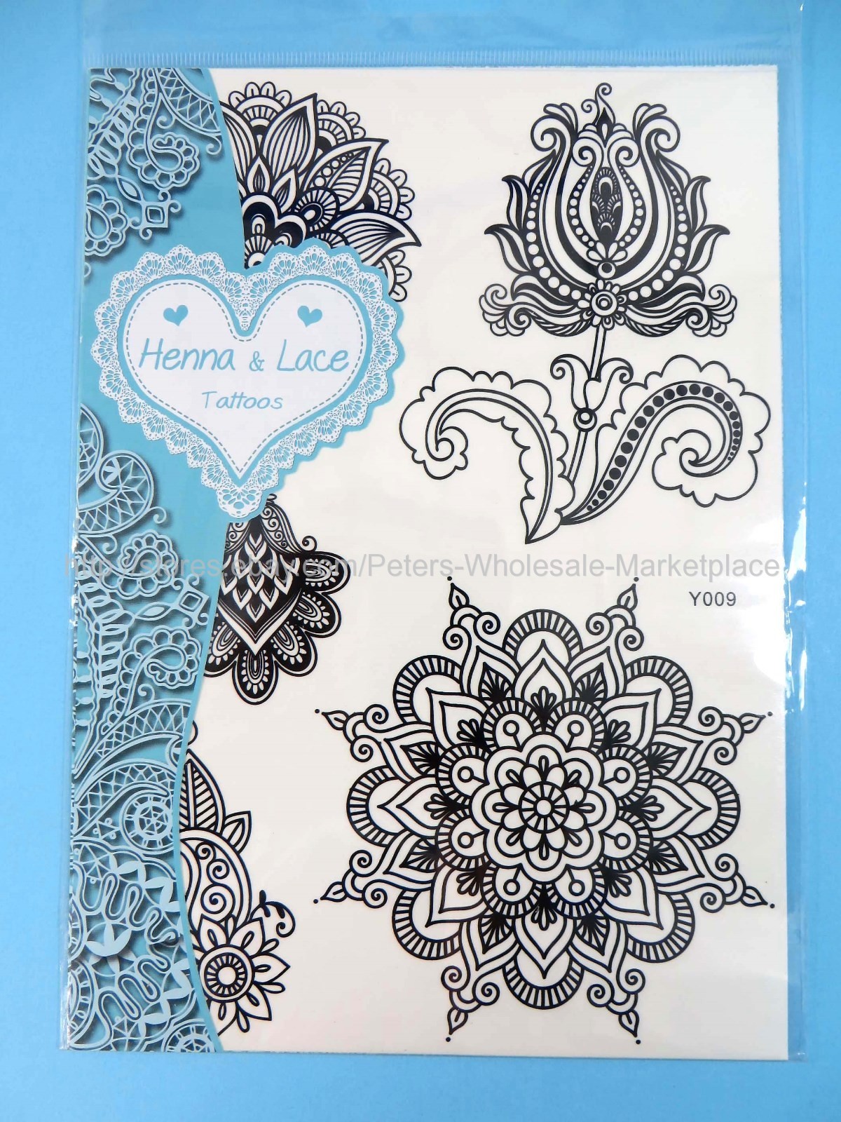 12 sheets wholesale large black henna lace Real Looking Temporary Tattoos