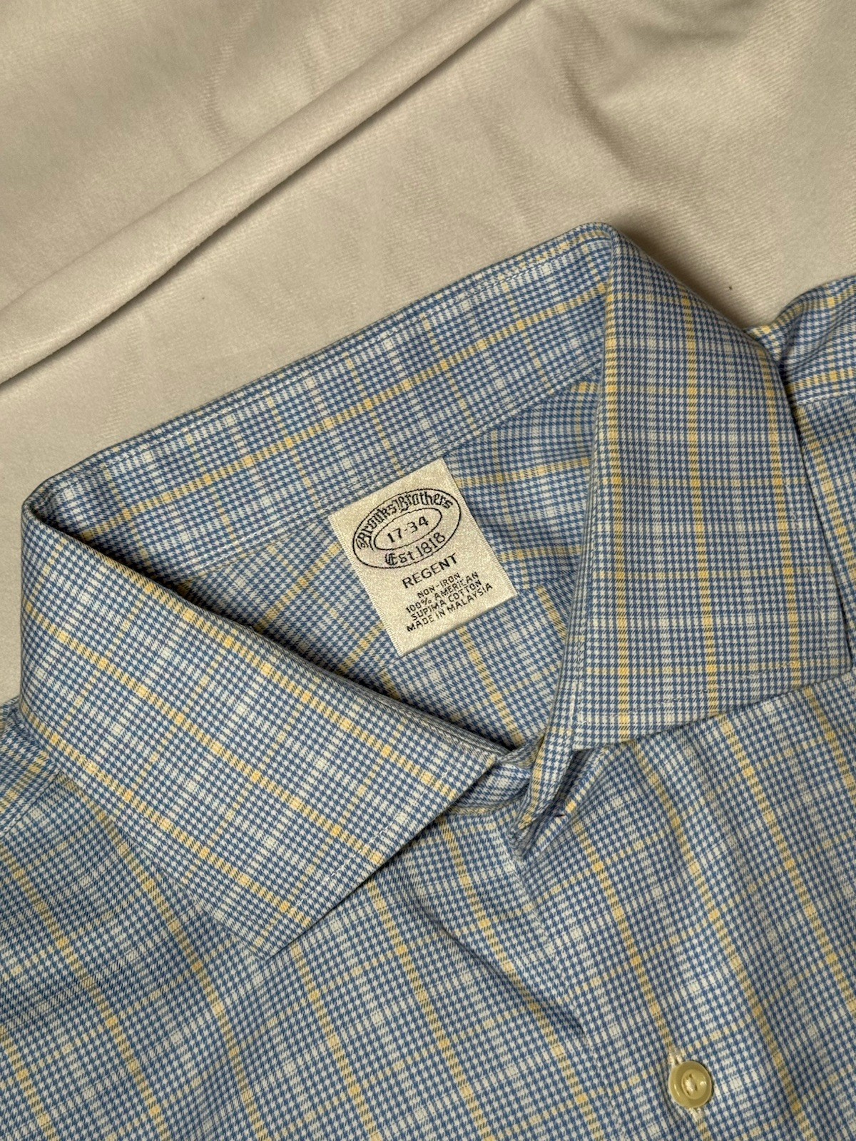 Brooks Brothers Regent Shirt Blue Plaid Size 17-34