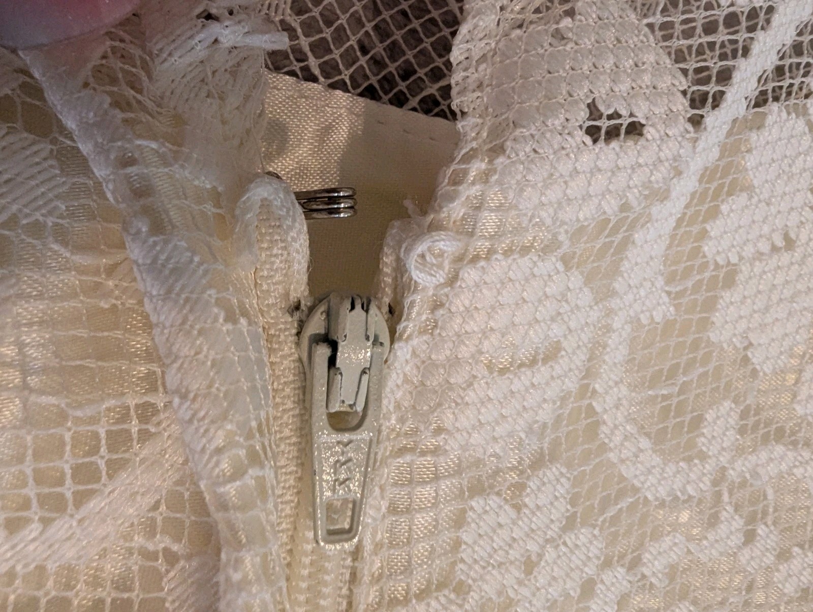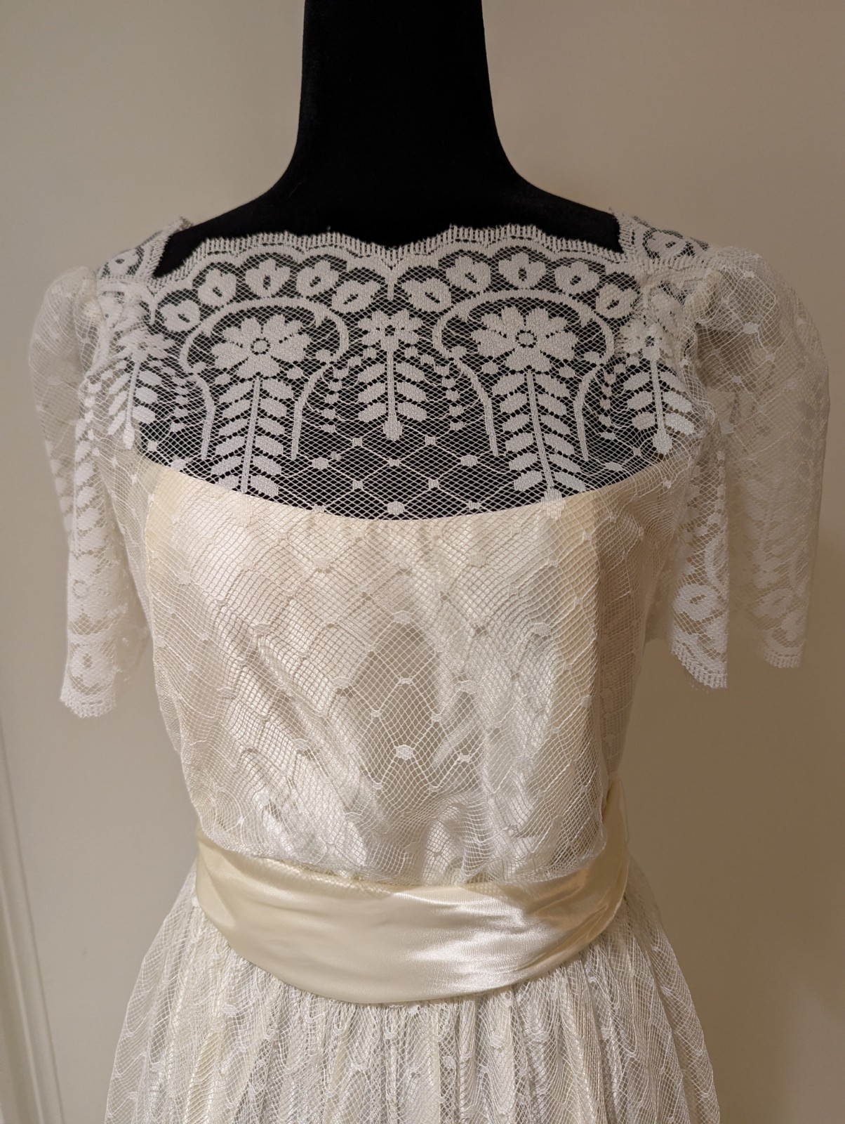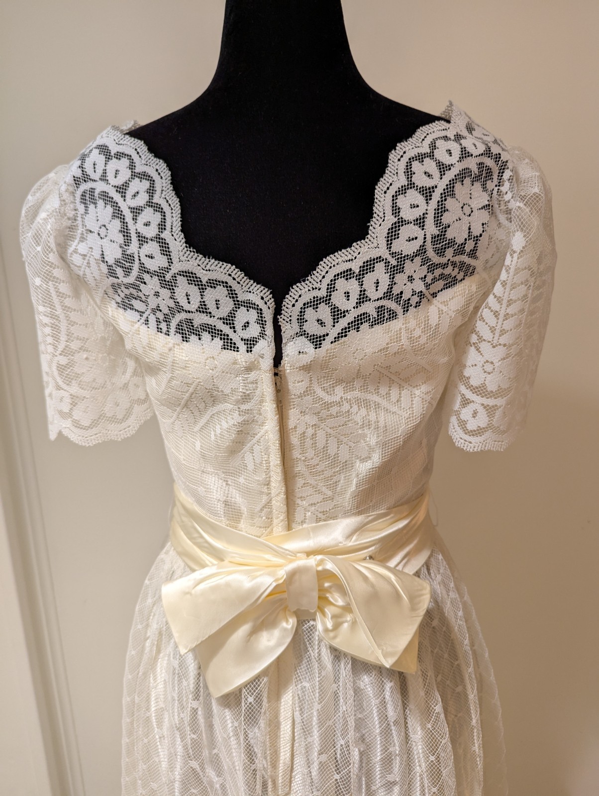 Vintage 1990s JCPenney ILGWU Ivory Satin Lace Wedding Dress Short sleeve