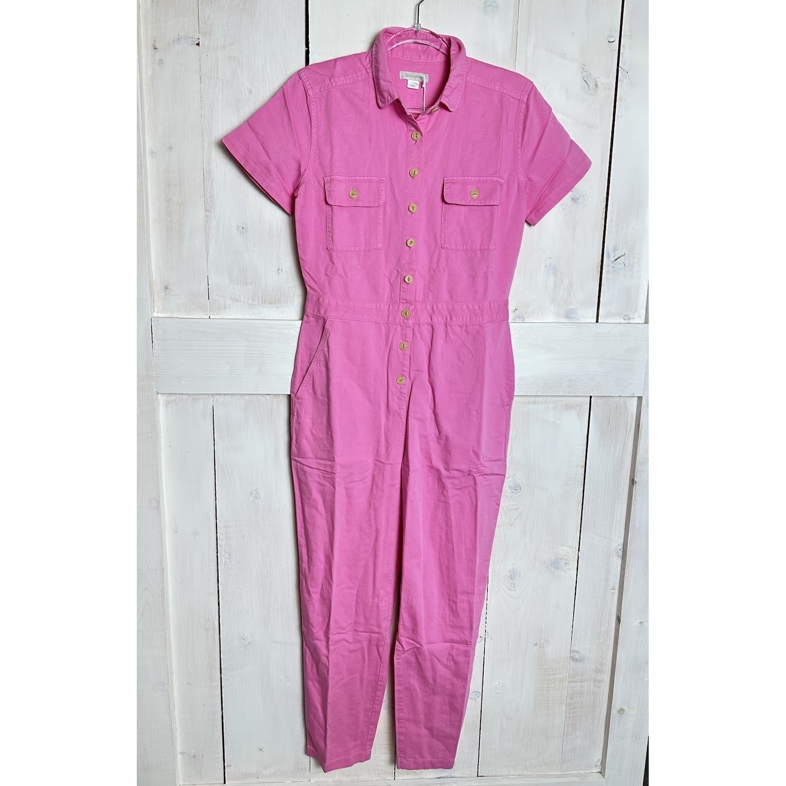 как выглядит OUTERKNOWN Jumpsuit Pink Short Sleeve Organic Cotton Linen Sz XS Anthro Revolve фото