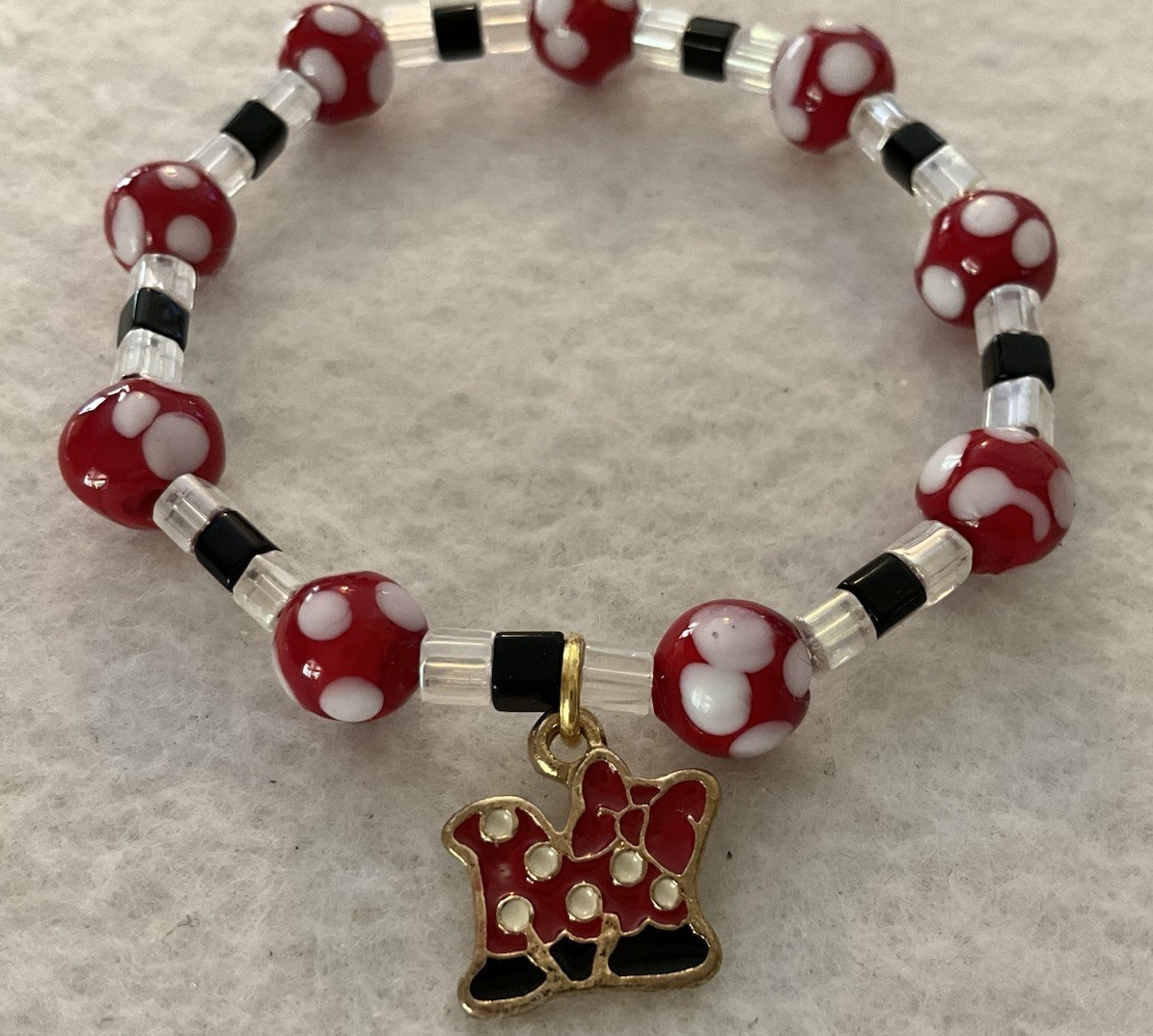 7 Minnie Mouse Minimalist Beaded Stretch Charm Bracelet/Bow with M