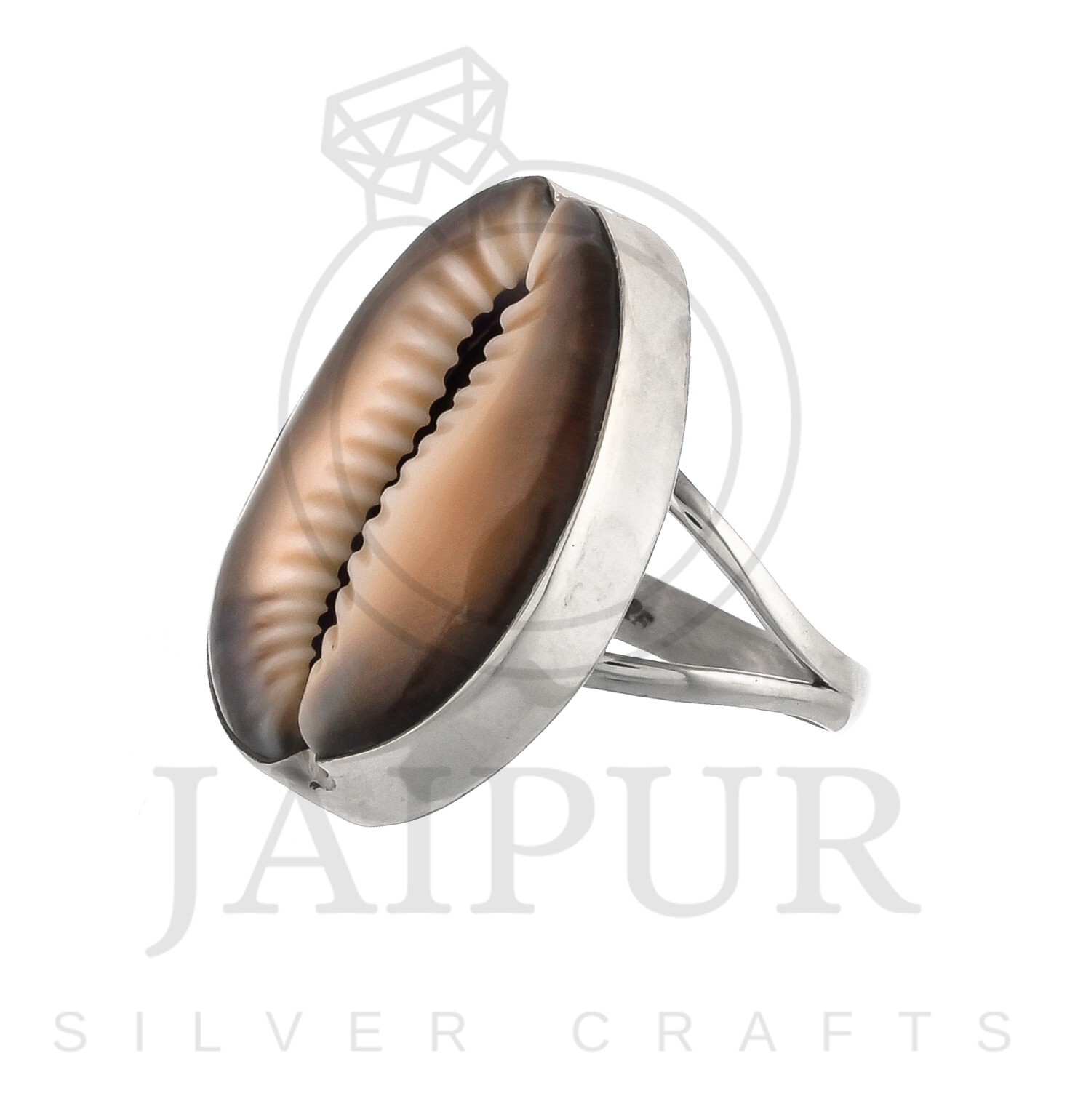 925 Solid Sterling Silver Ring Natural Brown Cowrie Shell Gemstone US Size JSR19