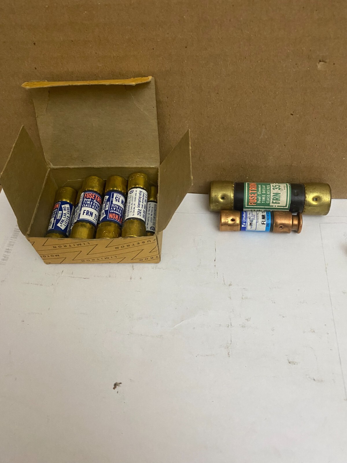 как выглядит LOT OF 8 Bussmann Fusetron FRN-R-15 Dual-Element Time Delay Fuses. 15 Amp 2 фото