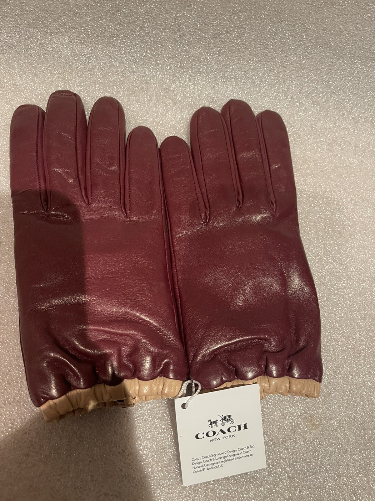NWT Coach Leather Tech Gloves Size 7.5 With Elasticized Cuffs Vintage Mauve