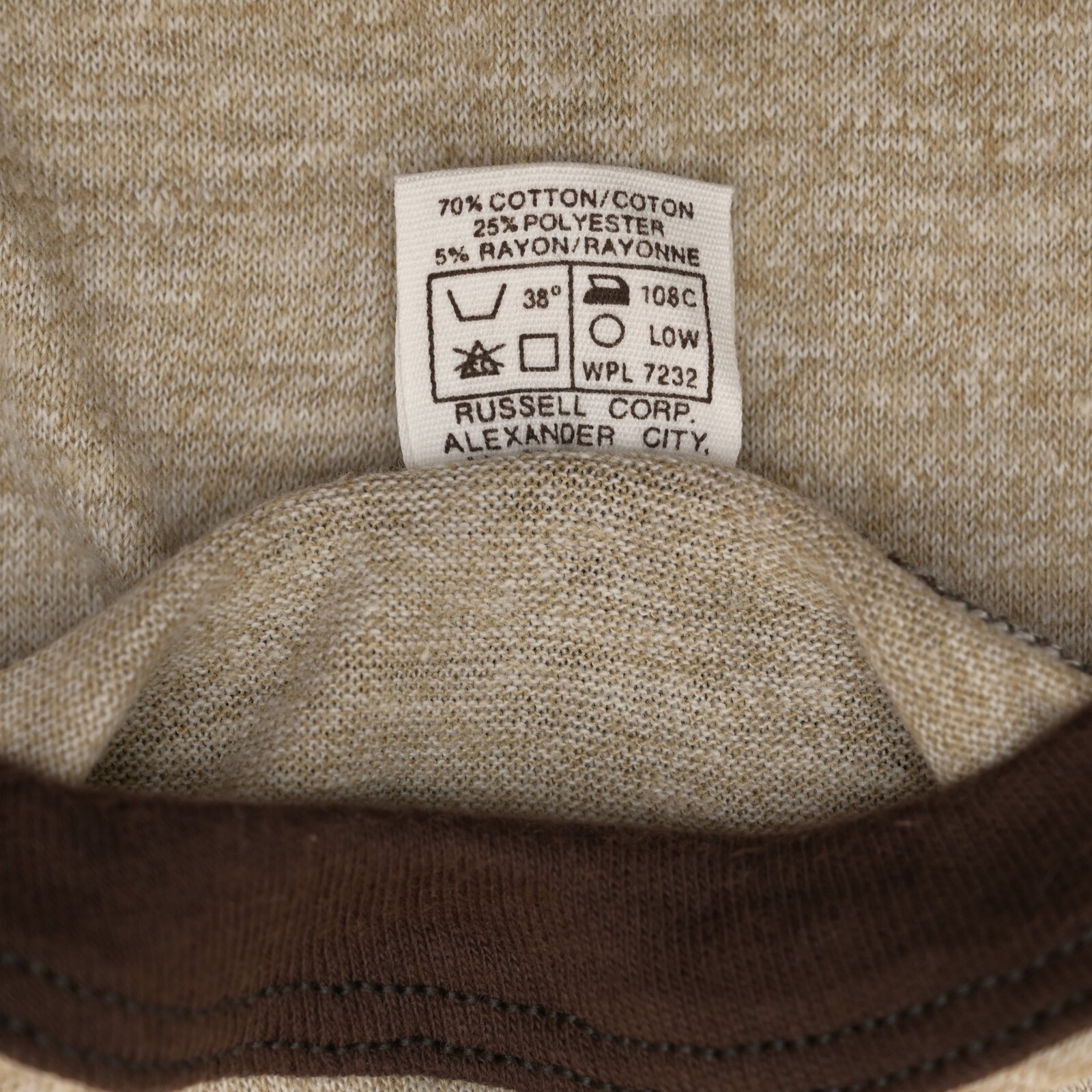 VINTAGE Russell Athletic NOS 70s Heather Brown Blank Baseball Tee Size M