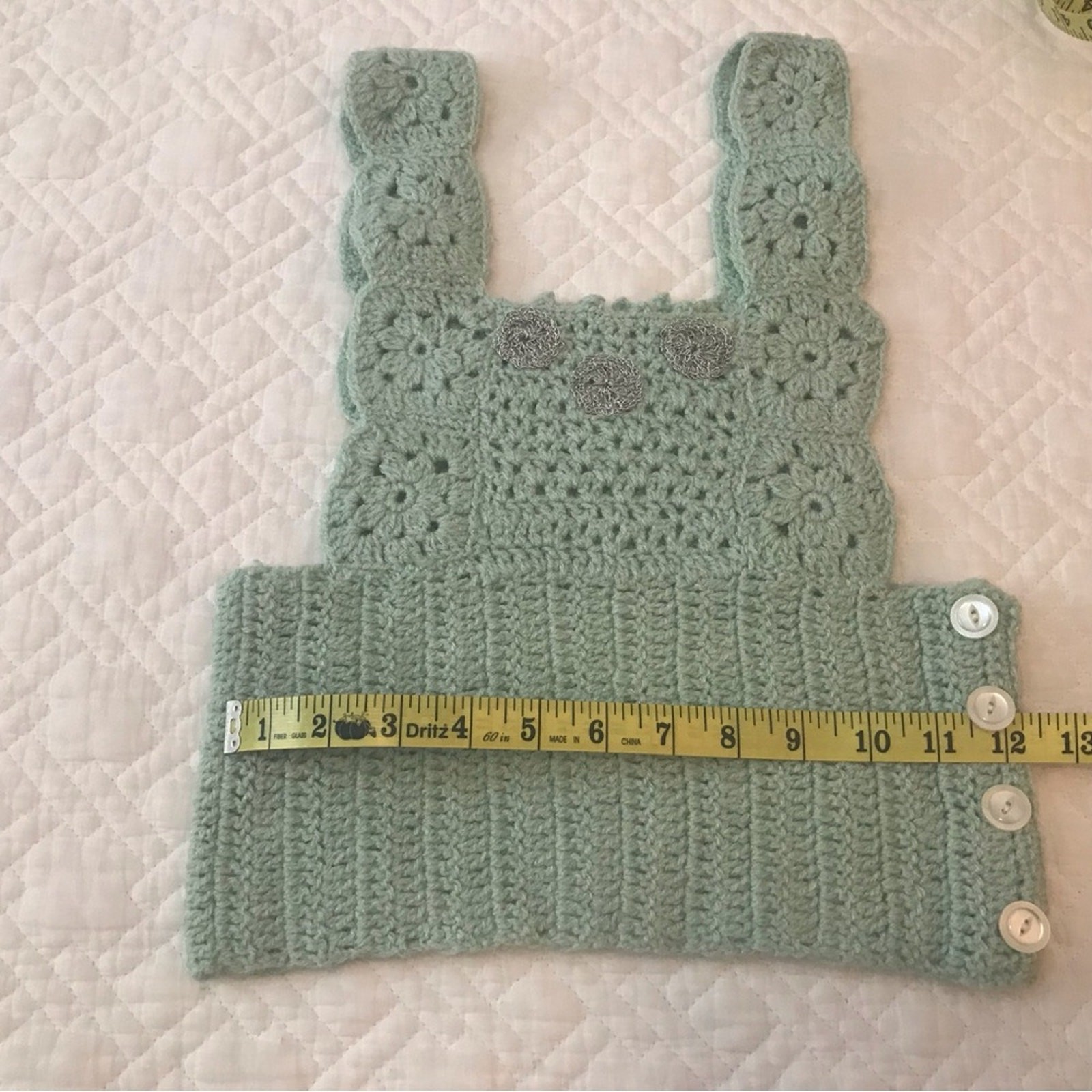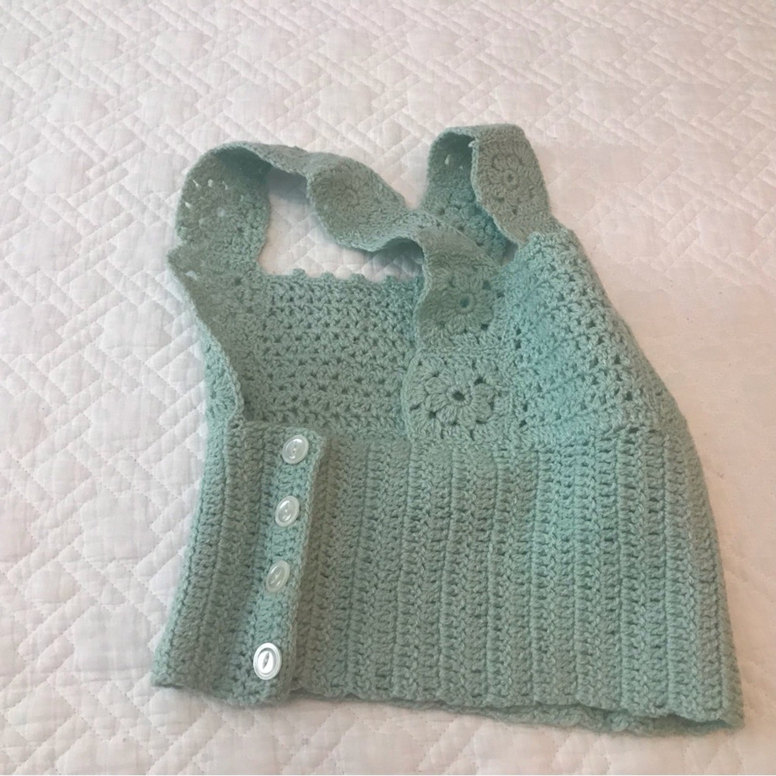 как выглядит Vintage Crocheted Green Silver Granny Square Vest Size Small фото