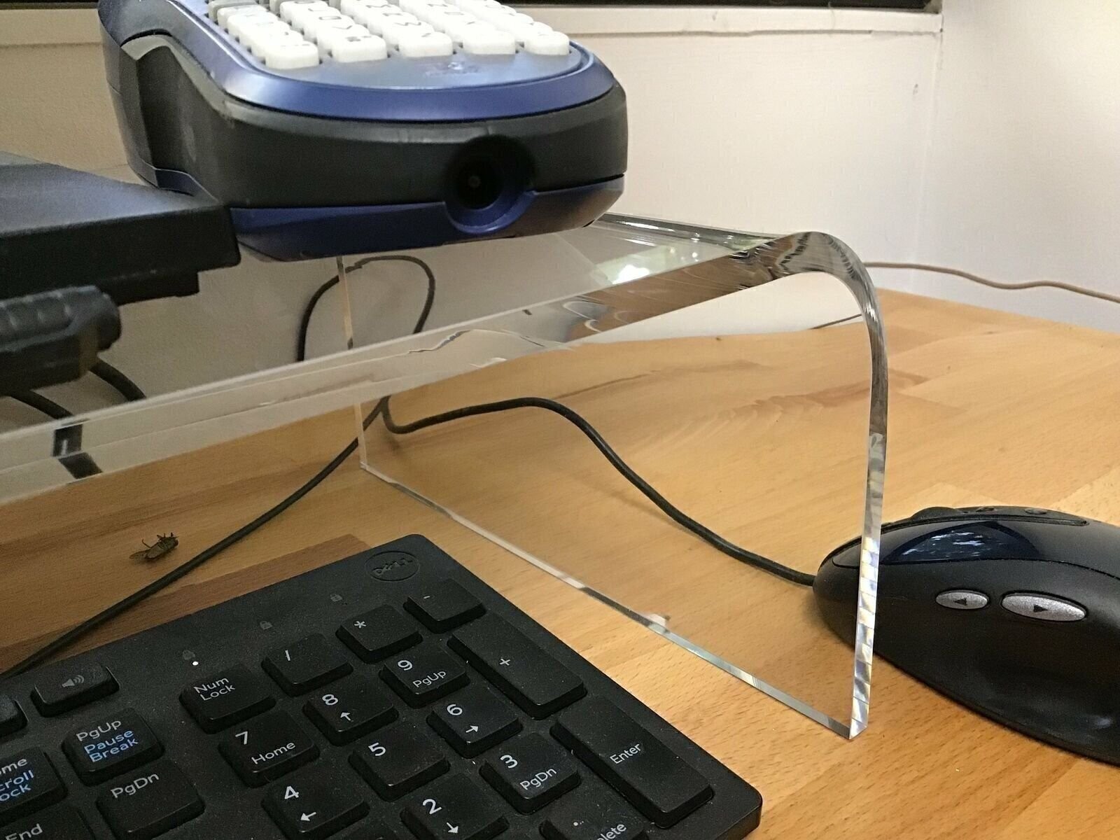 как выглядит Acrylic Glass Elevated Stand w/Divider - for Computers/Laptops 9" Wide Base фото