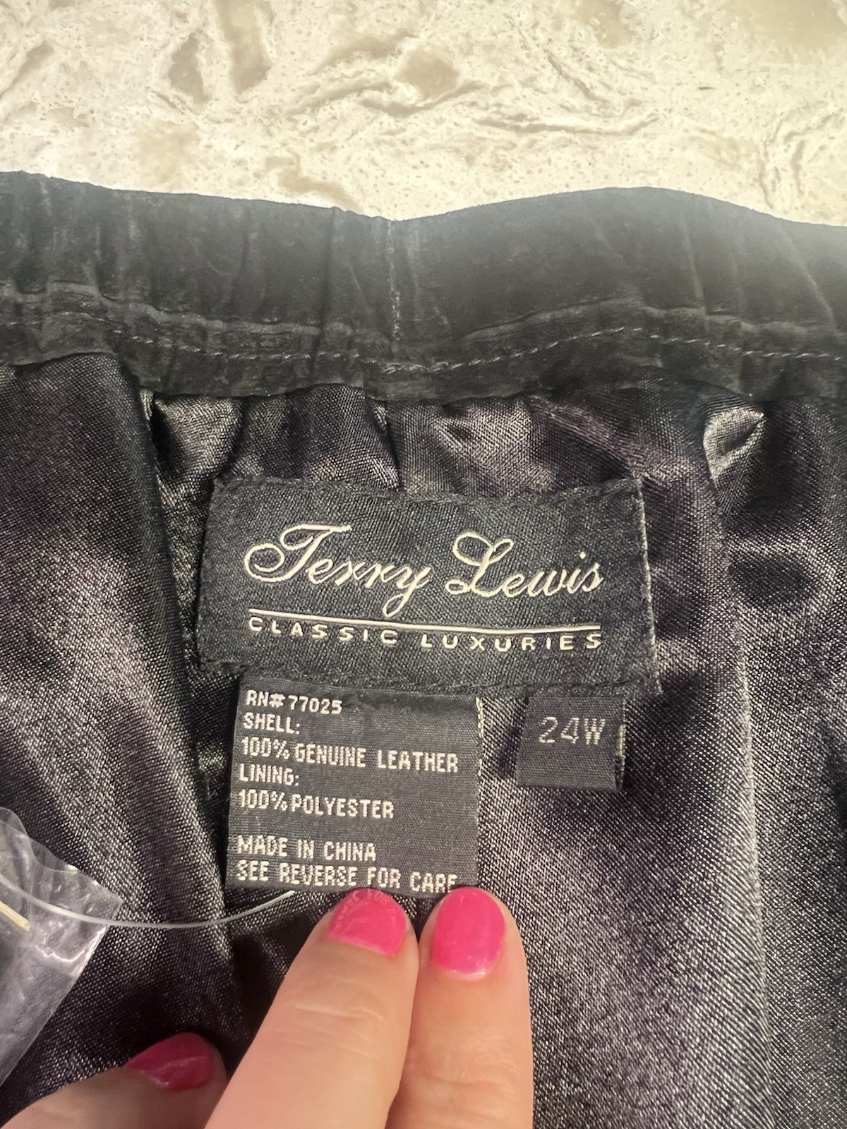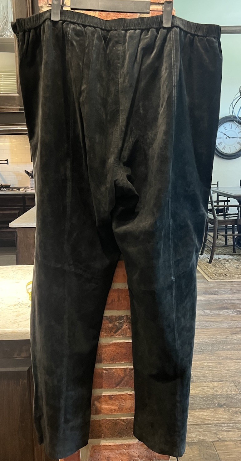 как выглядит Vintage Terry Lewis Pants Womens Black Suede Genuine Leather Lined Size 24W NWT фото