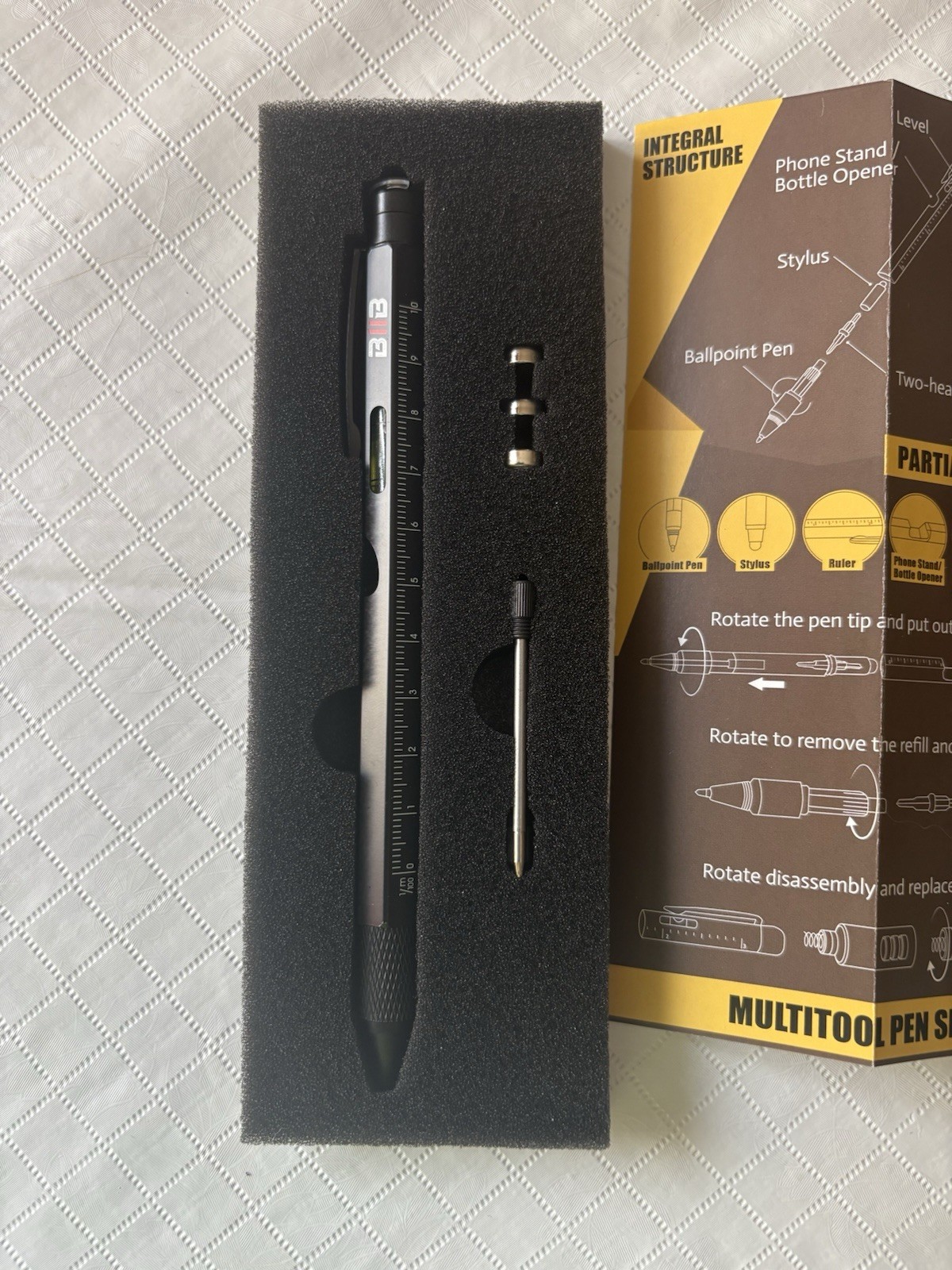 как выглядит 9 in 1 Multi-tool Men s Pen Set Led Light, Stylus, Screwdriver, Rulers, Level фото