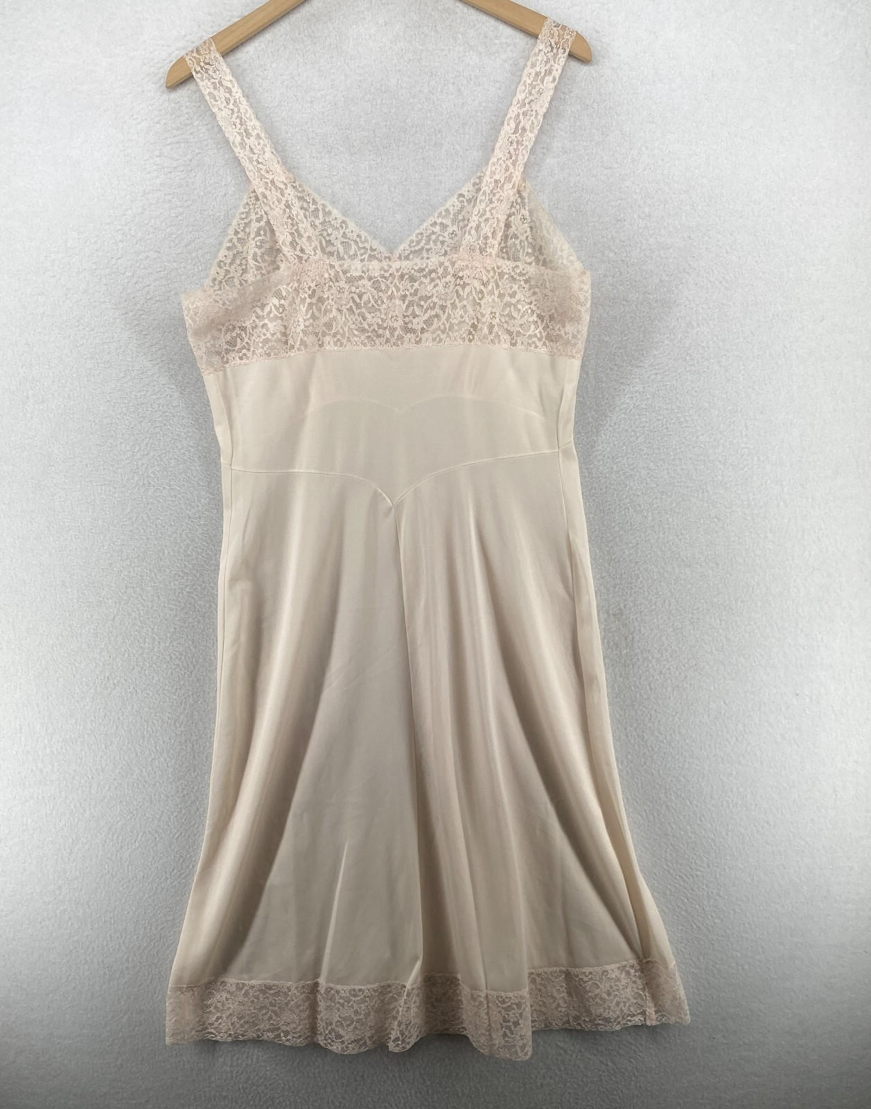 CARTERS DU PONT Nightgown 38 Nylon Lace Trim Slip Dress Sweatheart Pink VTG