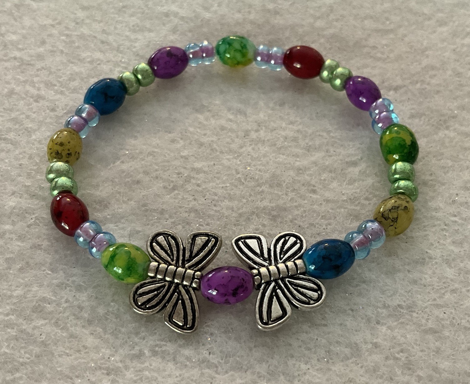 Girls Colorful Butterfly Beaded Stretch Bracelet/6.25 Length