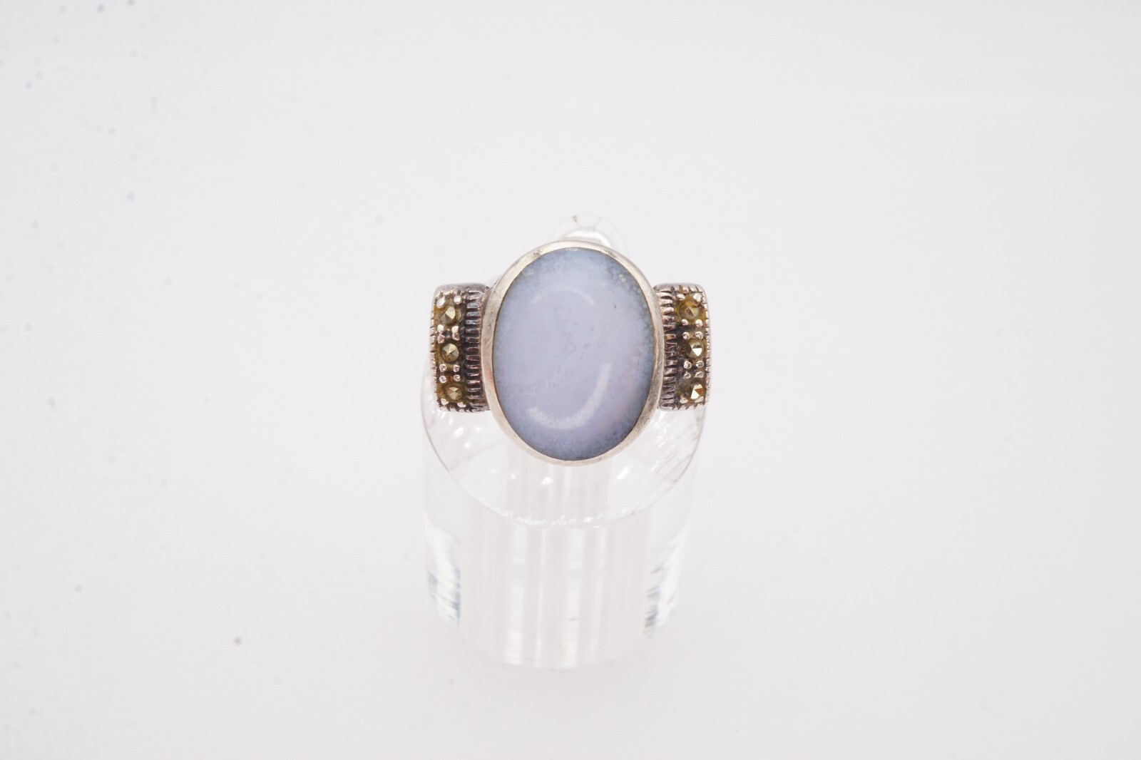 Vintage Sterling Silver 925 Agate Marcasite Ring Size 8
