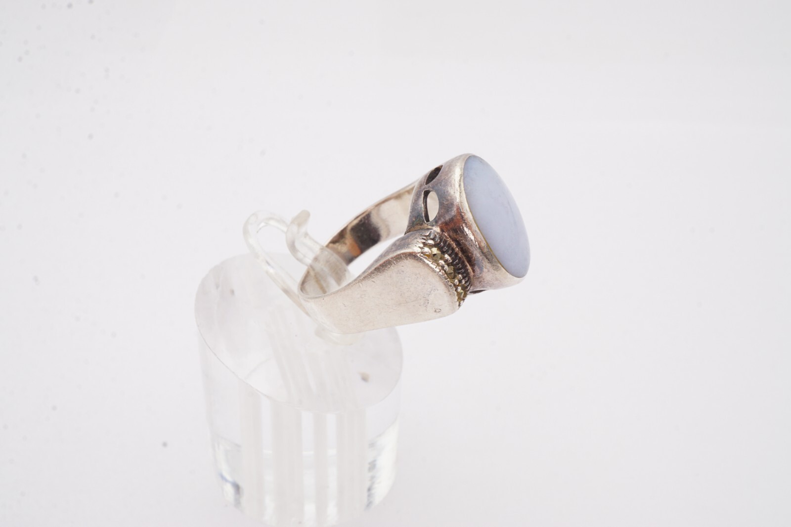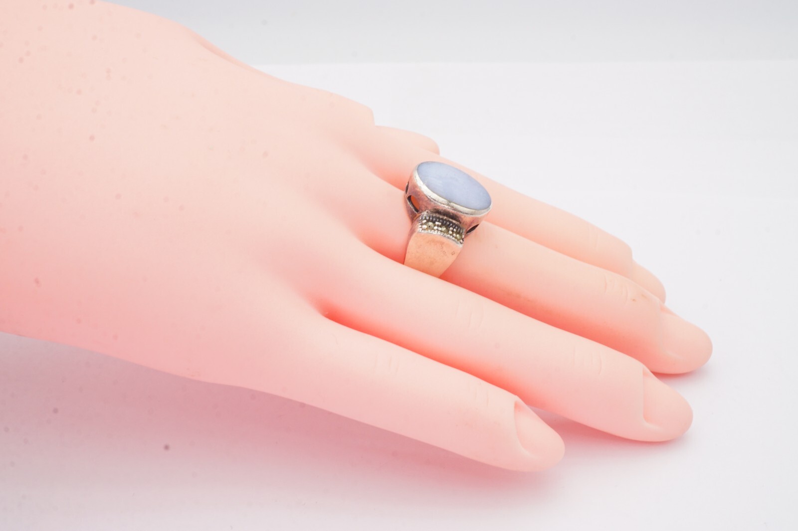 как выглядит Vintage Sterling Silver 925 Agate Marcasite Ring Size 8 фото