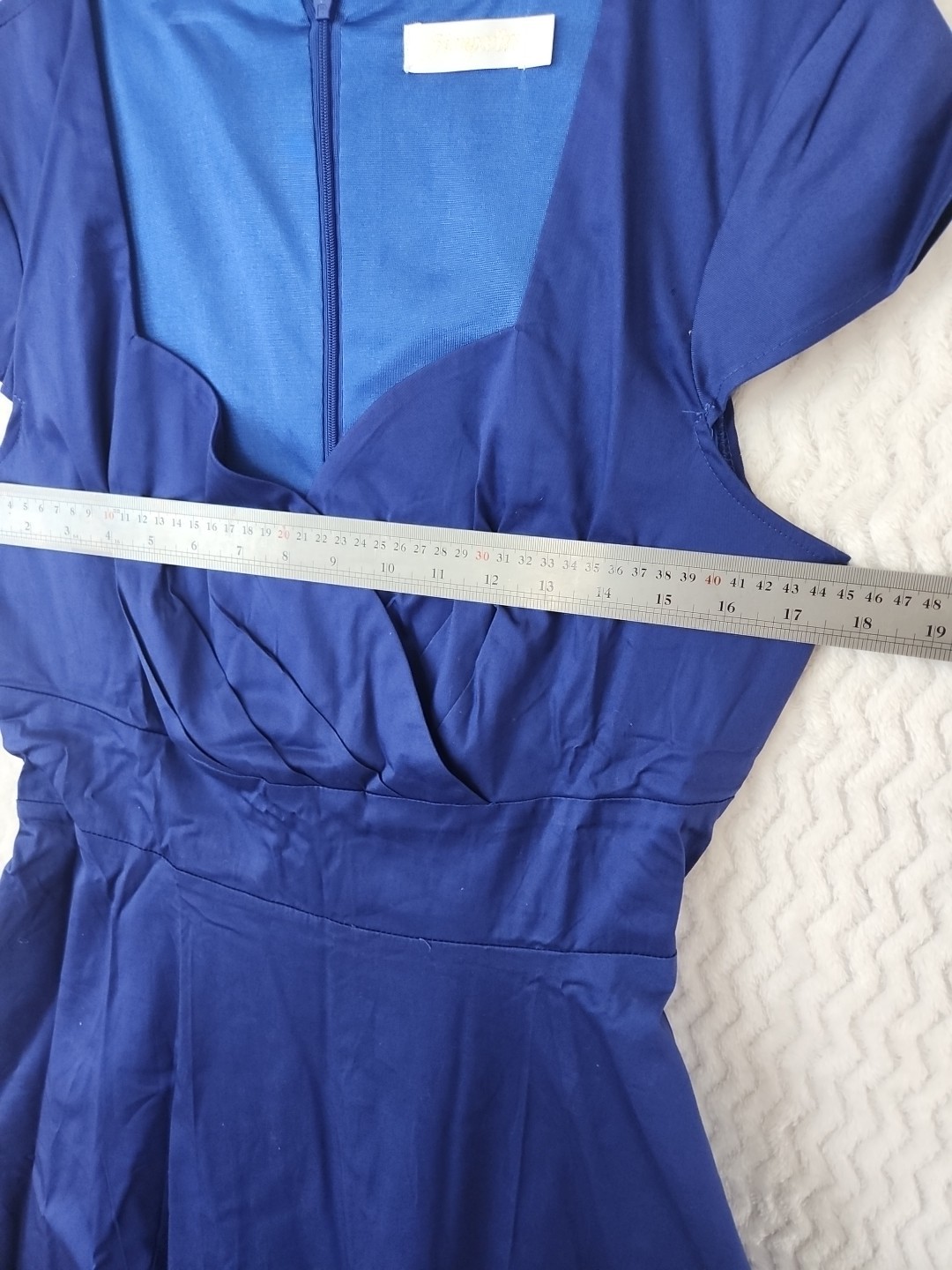 как выглядит Hanpceirs Cap Sleeve 1950s Retro Cocktail Swing Blue Dress Pockets Size L K0541 фото