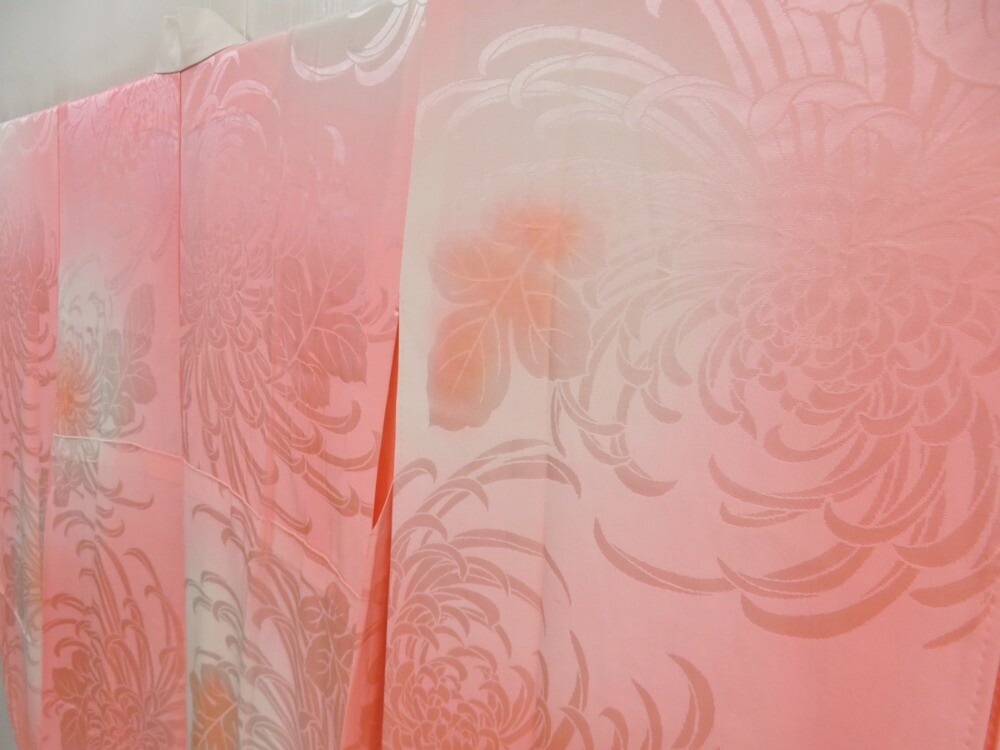 5326T14z630 Japanese Kimono Silk FURISODE JUBAN Chrysanthemum Pink