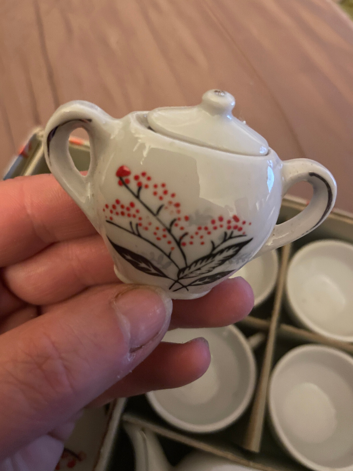 как выглядит Vintage Childs Porcelain Tea Set Toy Complete Hand Painted Flowers Silver Japan фото