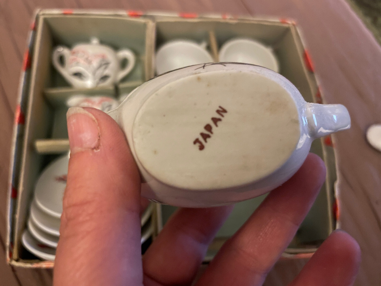 Vintage Child's Porcelain Tea Set Toy Complete Hand Painted Flowers Silver Japan