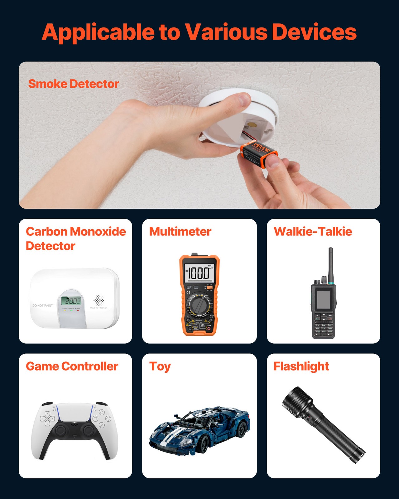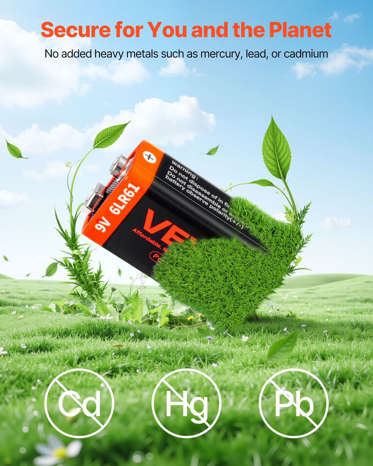 VEVOR 9V Alkaline Batteries 12Pack 9Volt Battery for Smoke Detector Long Lasting