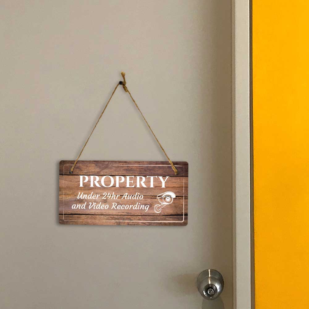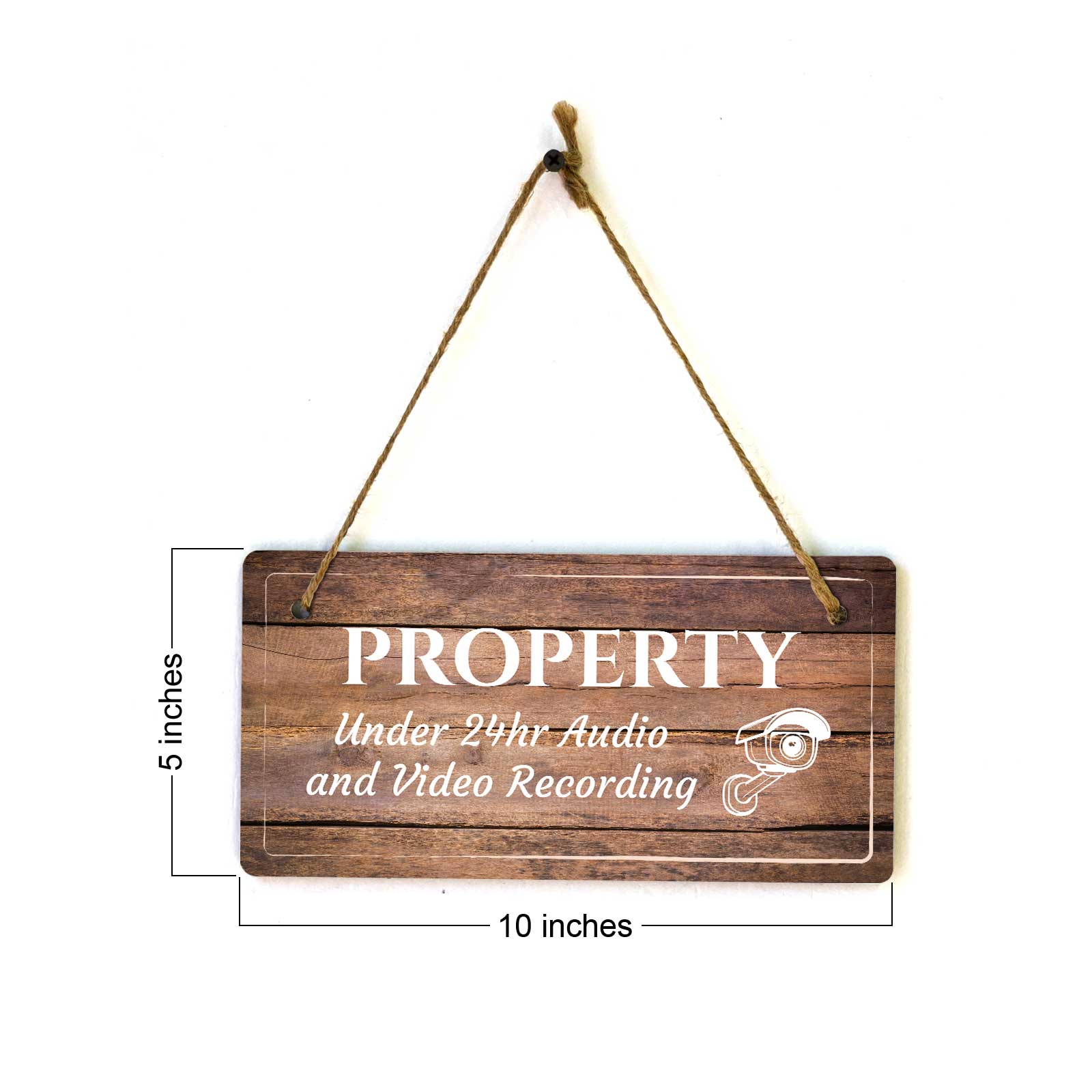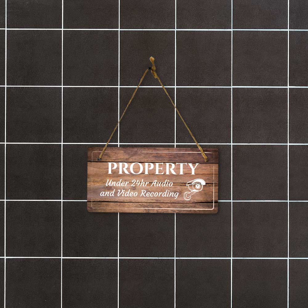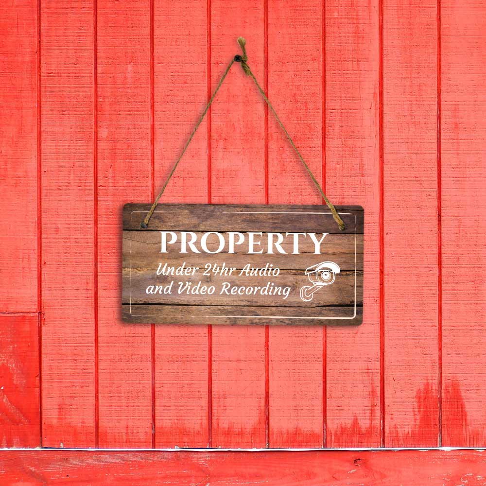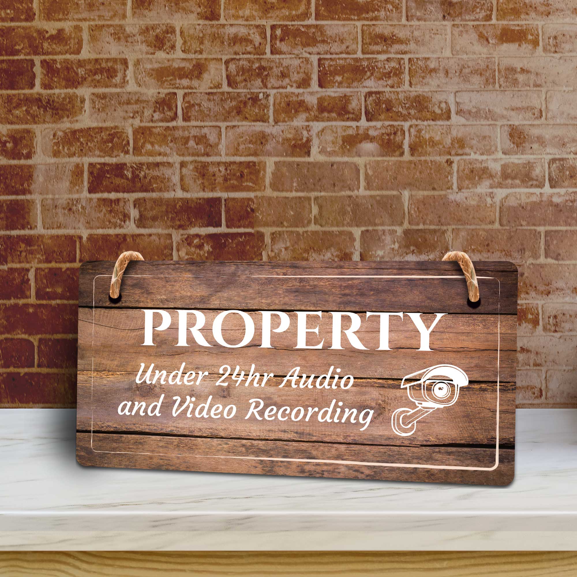 Security Surveillance Rustic Oak Wood 5 x 10 Hanging Signs