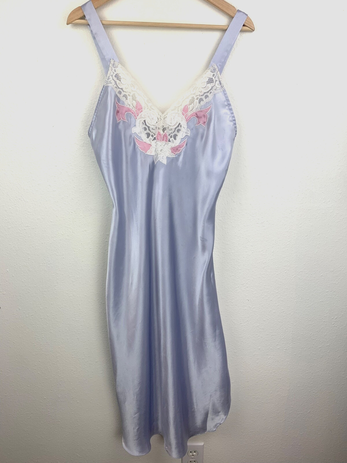 как выглядит Vintage Val Mode Nightgown Purple Satin Size S Applique Flower Sleeveless фото