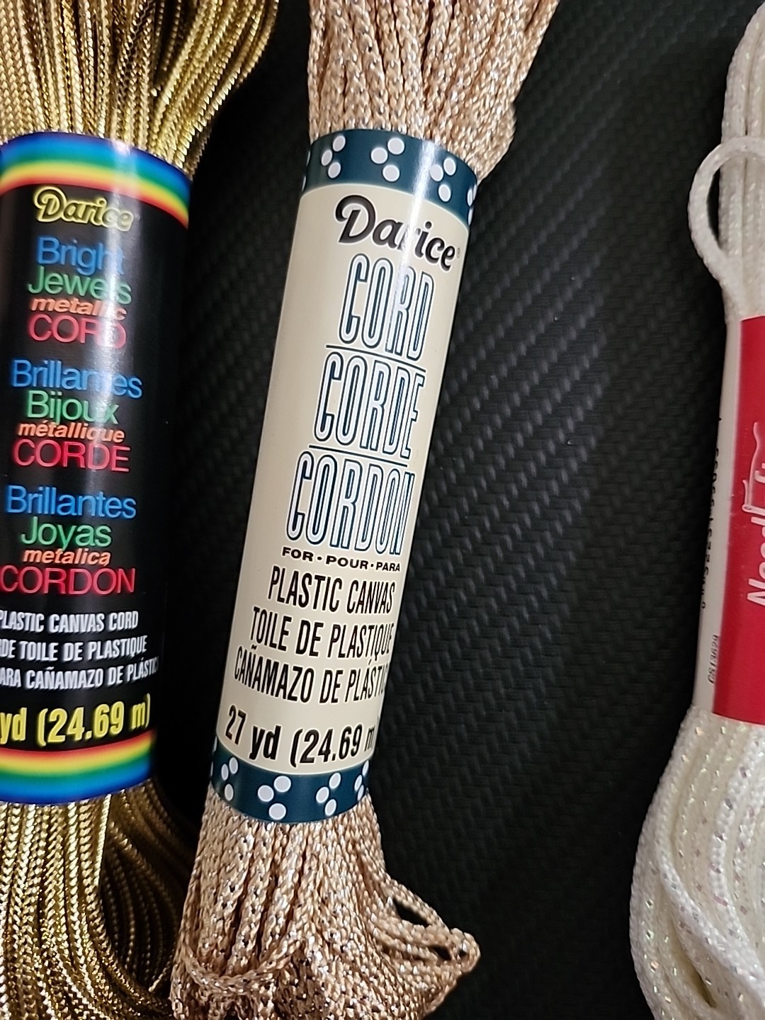 как выглядит Lot 8 Metallic Gold White Red Cords 158 yards plastic canvas Scrapbook фото