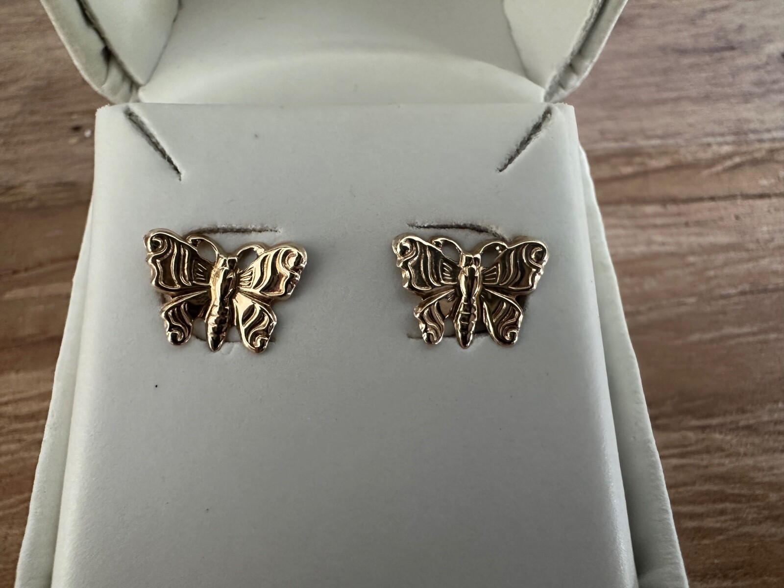 как выглядит 14K yellow gold butterfly earrings фото
