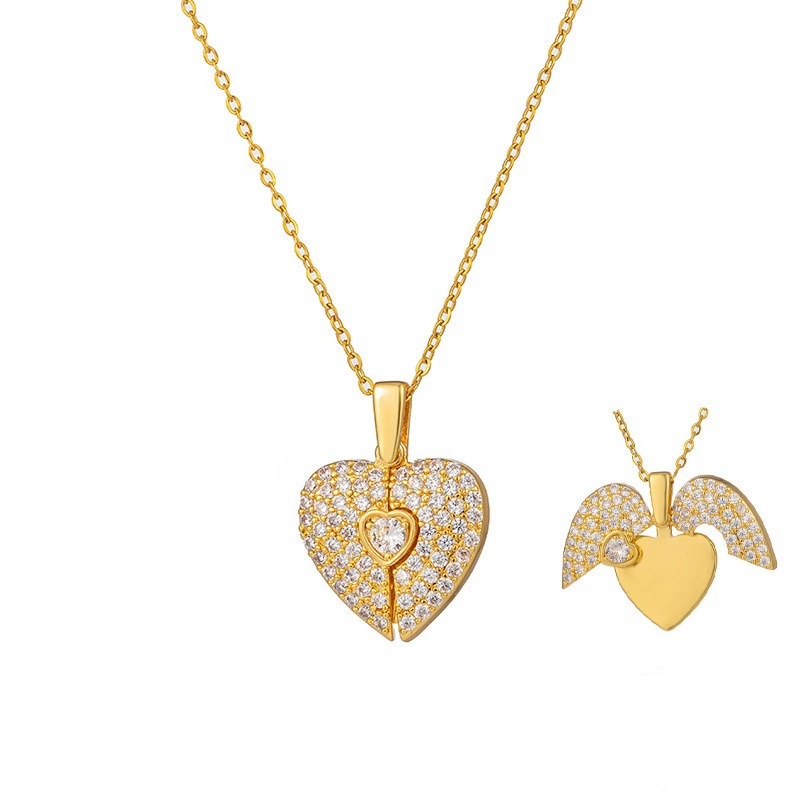 Women's Heart Opening And Closing Necklace Wings Pendant Clavicle Chain Jewelry