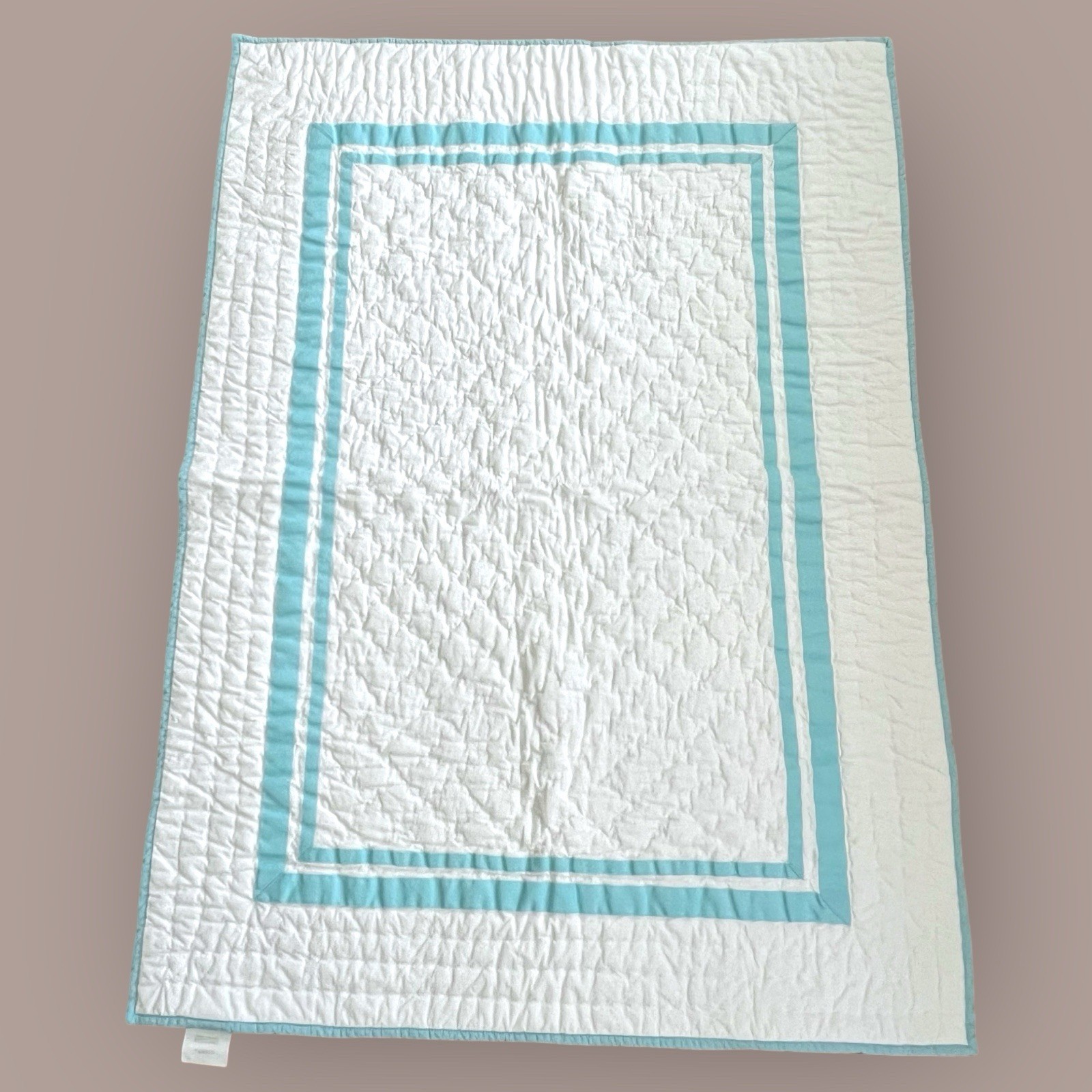 Pottery Barn Kids Crib Quilt, Sham, Dust Ruffle Set Baby White with Blue Trim