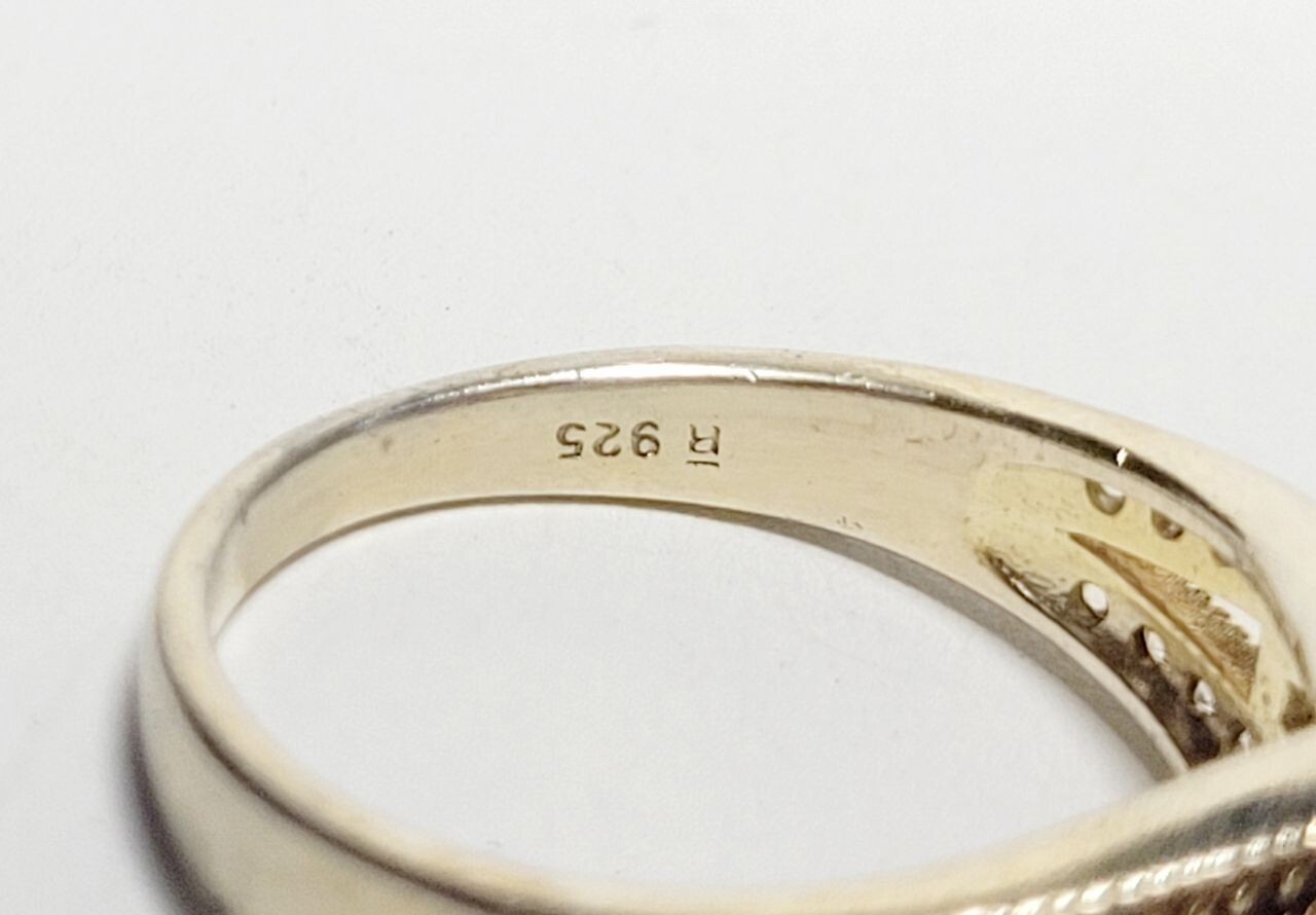 как выглядит 925 sterling silver vermeil and cubic zirconia ring size 8.75 фото