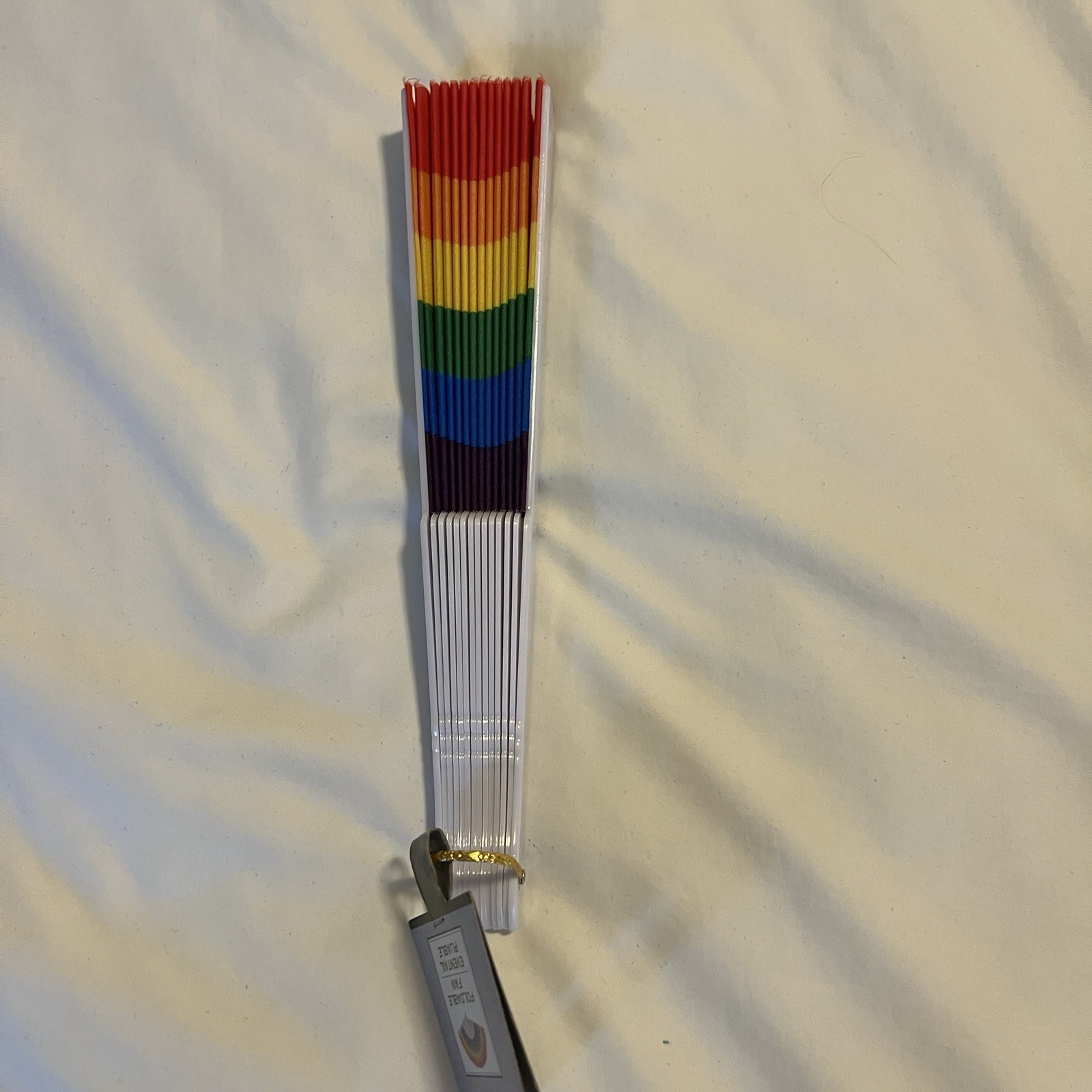 как выглядит LGBTQ Rainbow Striped Folding Fan Gay Pride New With Tags L13 фото
