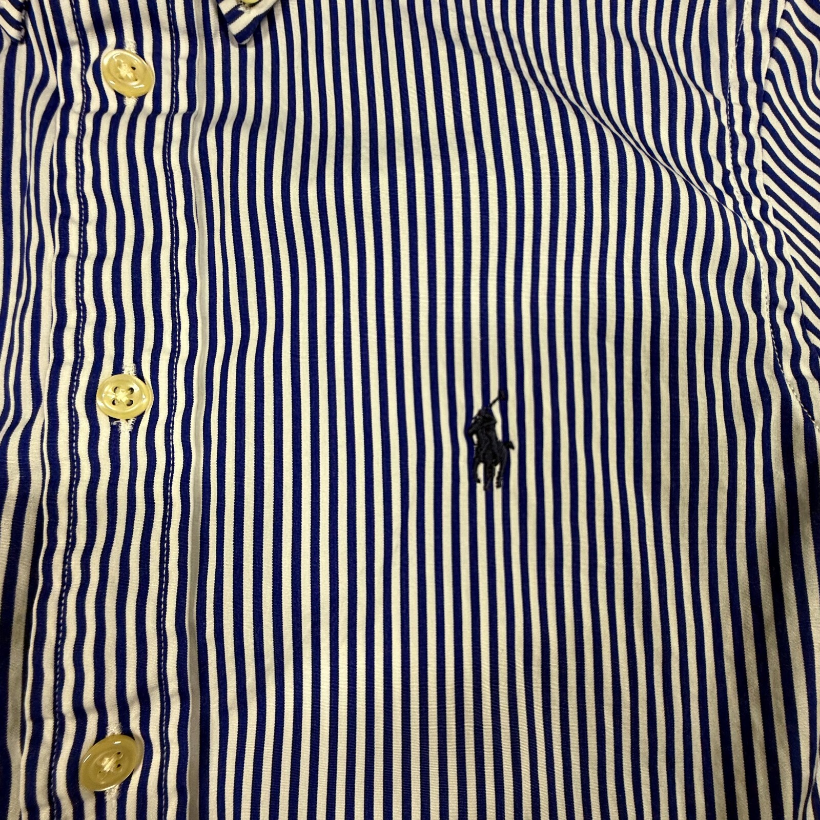 как выглядит Polo Ralph Lauren Mens Dress Shirt Size 18 Blue White Striped Slim Fit фото