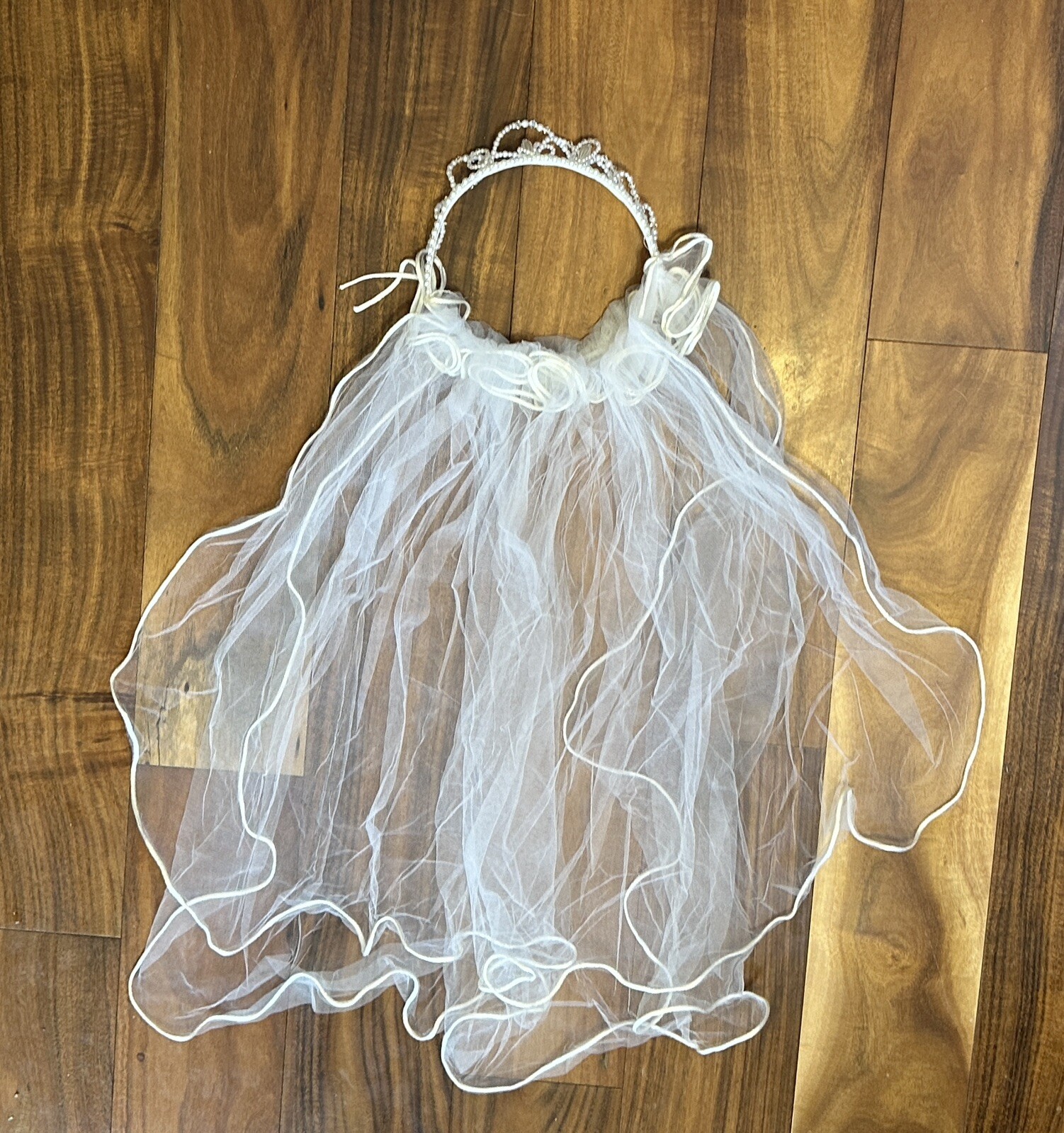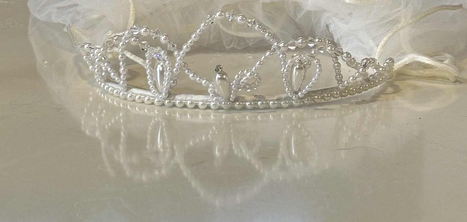Communion Flower Girl Beaded Veil Head Piece Pearl Headband Sheer White Princess