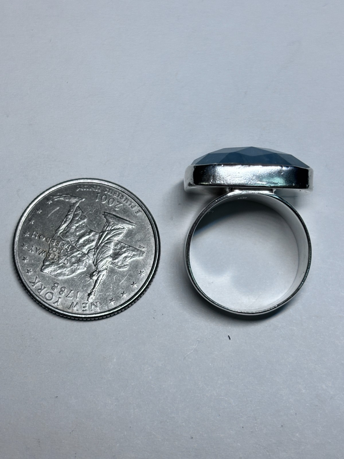 как выглядит Sterling Silver Checkerboard Cut Blue Chalcedony Cocktail Ring 9.9g Sz 8 фото