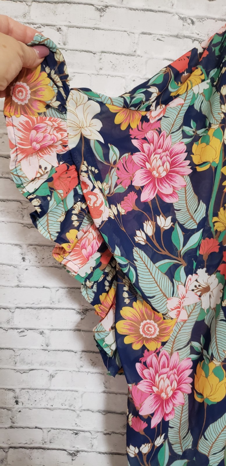Umgee Floral Kimono Ruffle Sleeve Open Front Layered Womens M Beach Cover Up