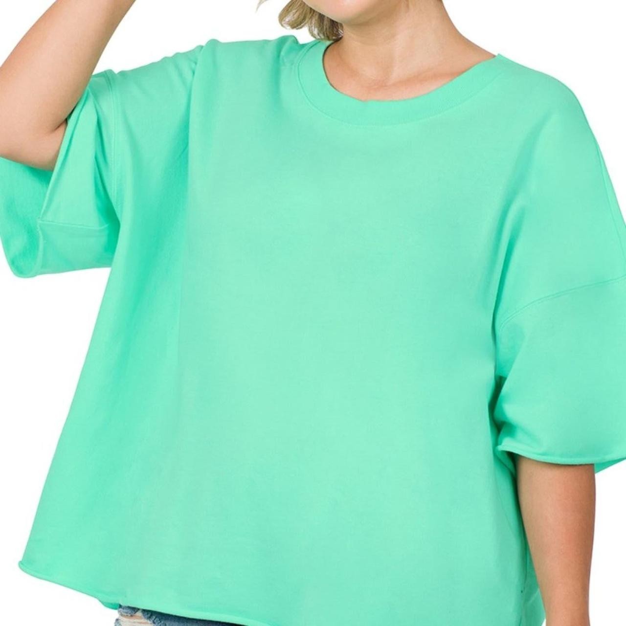 как выглядит NWT Zenana French Terry Drop Shoulder Raw Edge Top фото