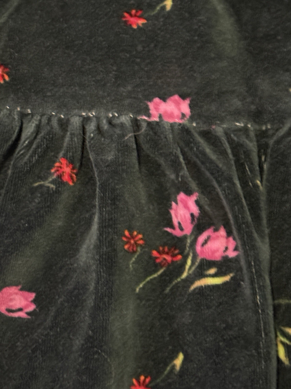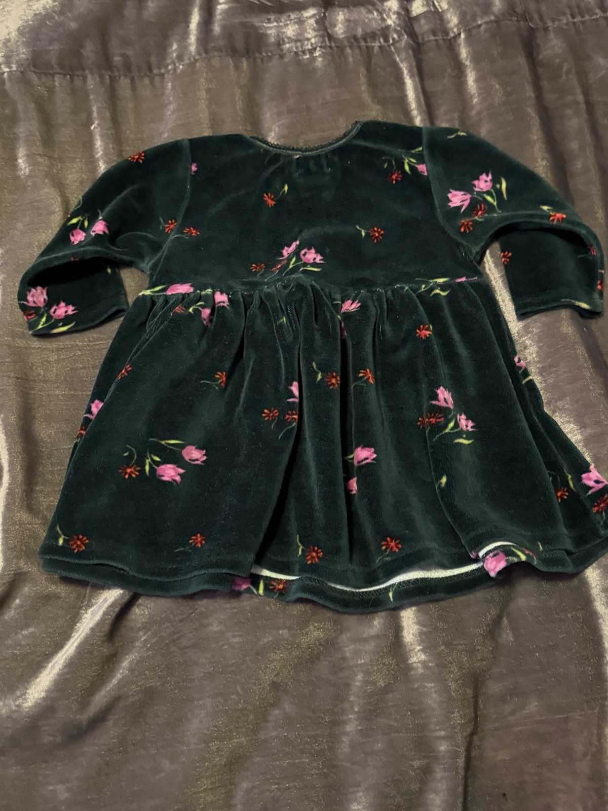 как выглядит Vintage 90s Baby Gap Long Sleeve Dark Green Velvet Floral Dress 6-12 Months фото