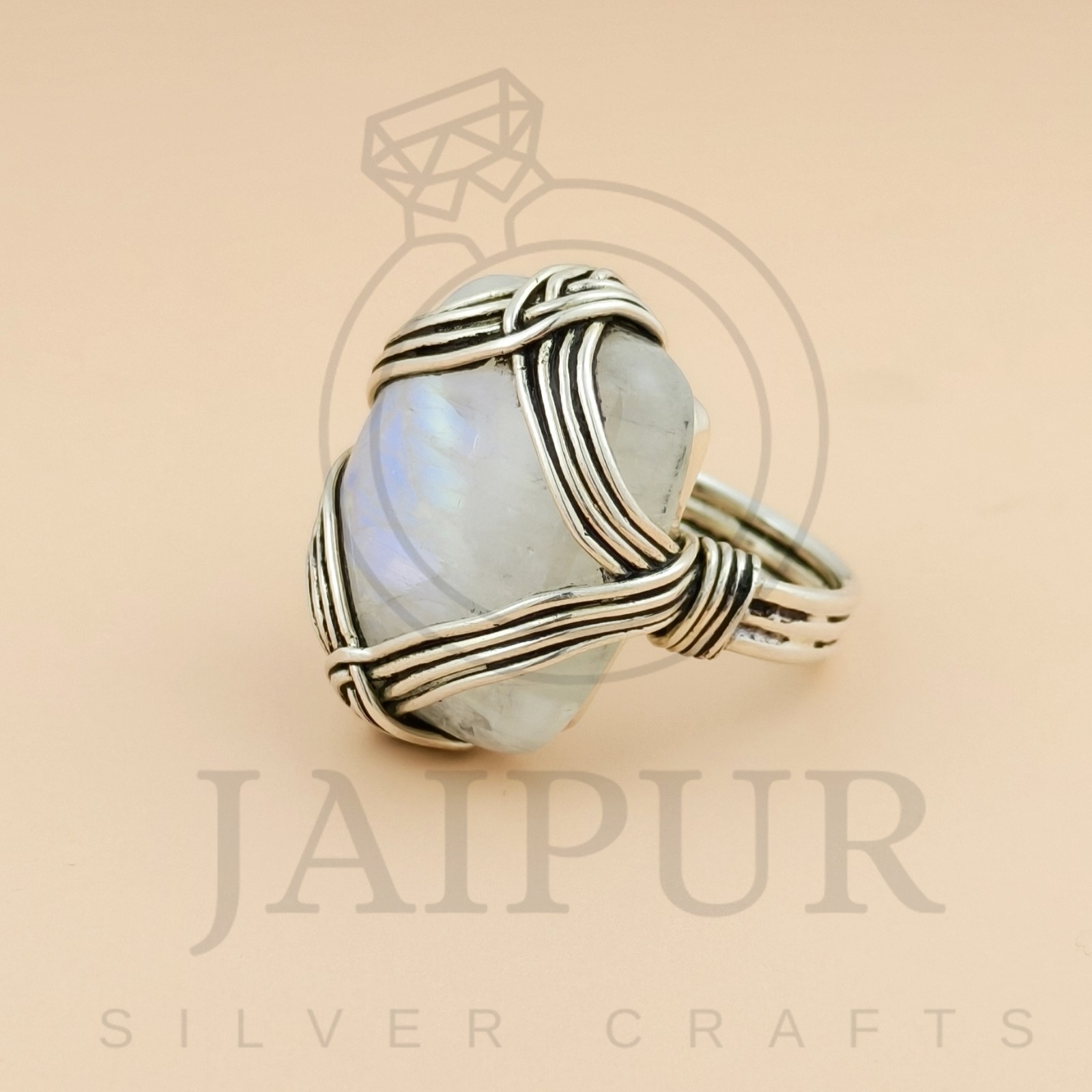 925 Solid Sterling Silver Wire Ring Natural Rainbow Moonstone US Size 7 JSR27