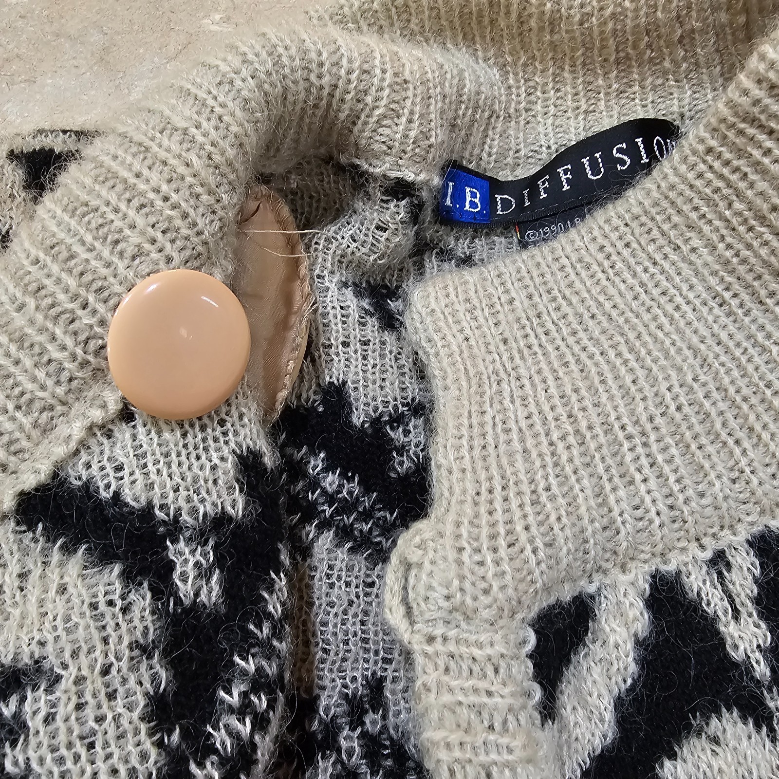 как выглядит Vintage I.B. Diffusion Mohair Blend Knitted Cardigan 1990 Beige/Black Size Small фото