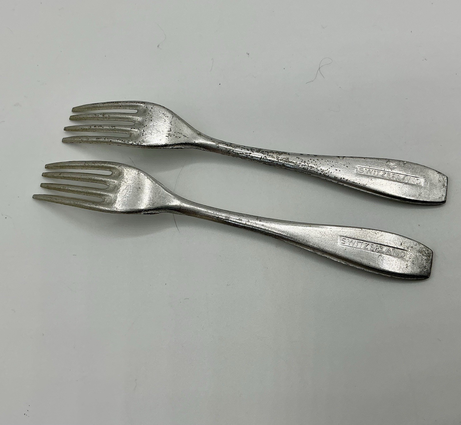Vintage Toy Aluminum Silverware Flatware Switzerland 4 1/4 Long 8 pcs