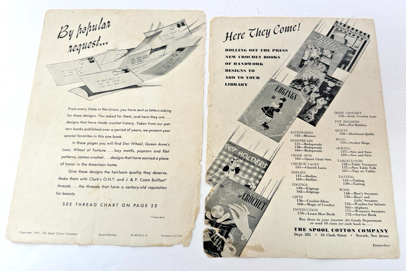 Heirloom doilies crochet pattern hardback1995 Spool cotton company patterns 1941
